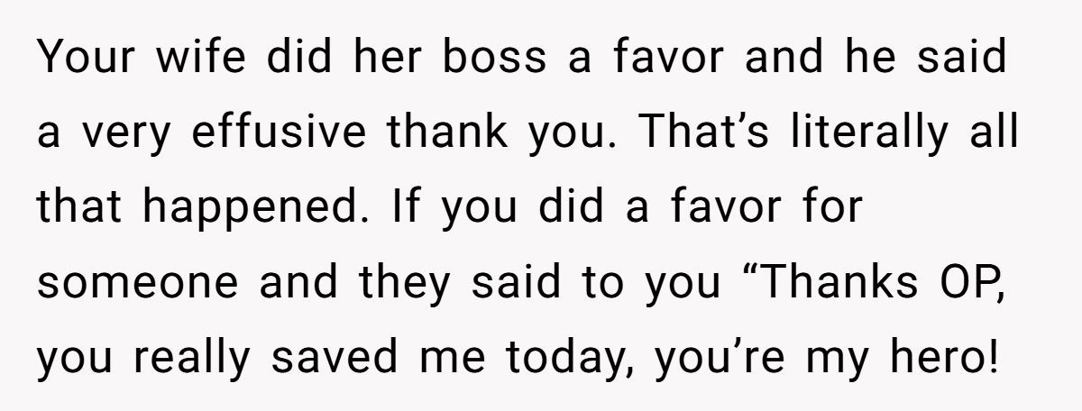 Was he the villain of the story? Not exactly. But snooping, jumping to conclusions, and picking a fight over a workplace thank-you isn’t a recipe for trust. As for his wife? She deserves both respect for her work and compassion for the emotional rollercoaster they’re both riding.