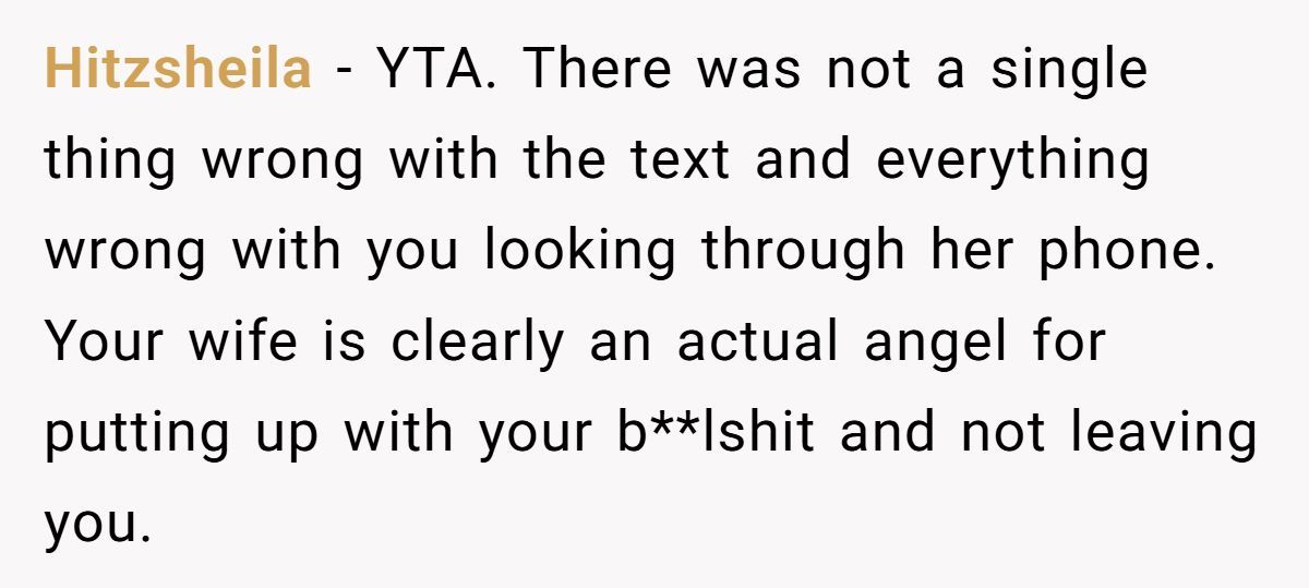 Others overwhelmingly said YTA. They slammed the husband for invading his wife’s privacy, overreacting to a harmless message, and projecting his insecurities onto her.