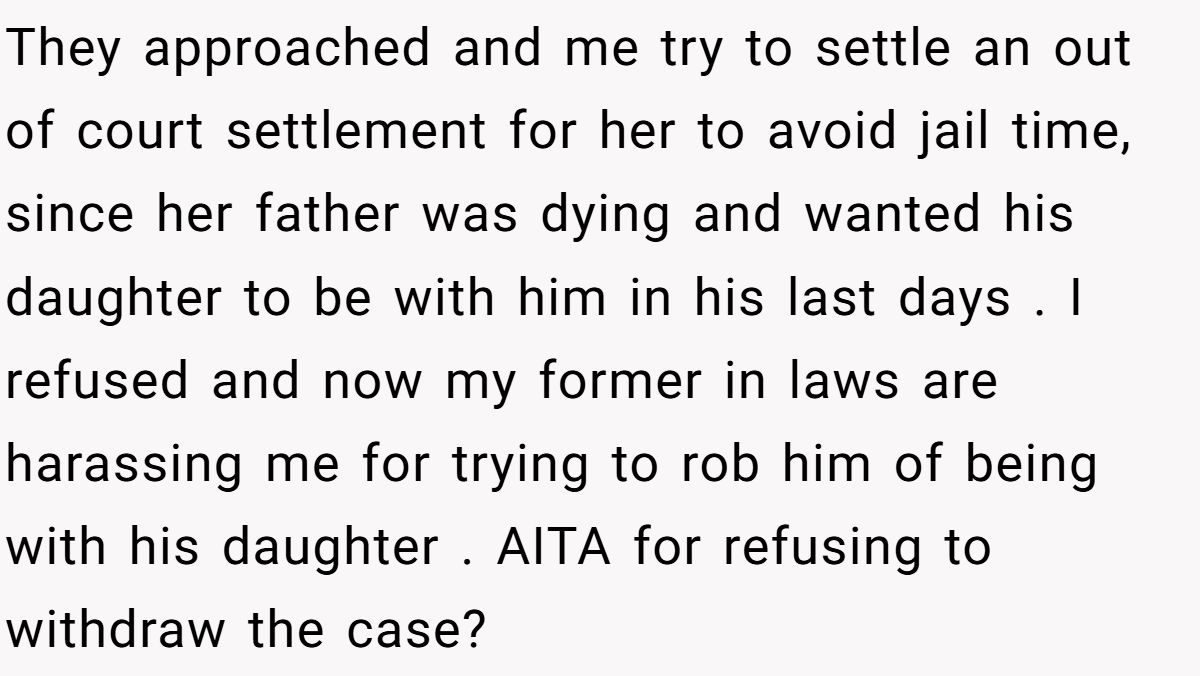 ![This Man Refused To Drop A Defamation Case Against His Ex-wife Despite Her Family’s Desperate Pleas [Reddit User] − Nta. This isn’t about the father in law dieing its about defamation. She still did what she did and now are grasping at straws because of their own maliciousness. If you drop the case then they will likely not continue to offer an out of court settlement.](https://dailyhighlight.com/wp-content/uploads/2025/07/45016-10.jpg)