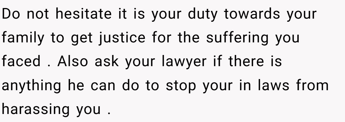 Some commenters urged him to stay vigilant, warning that his ex’s family might be using sympathy as another tactic to avoid accountability.