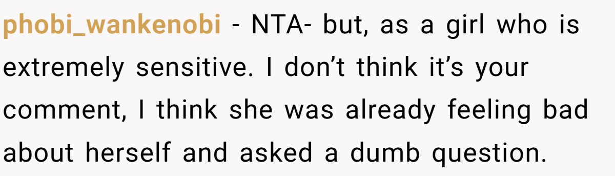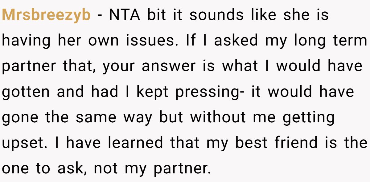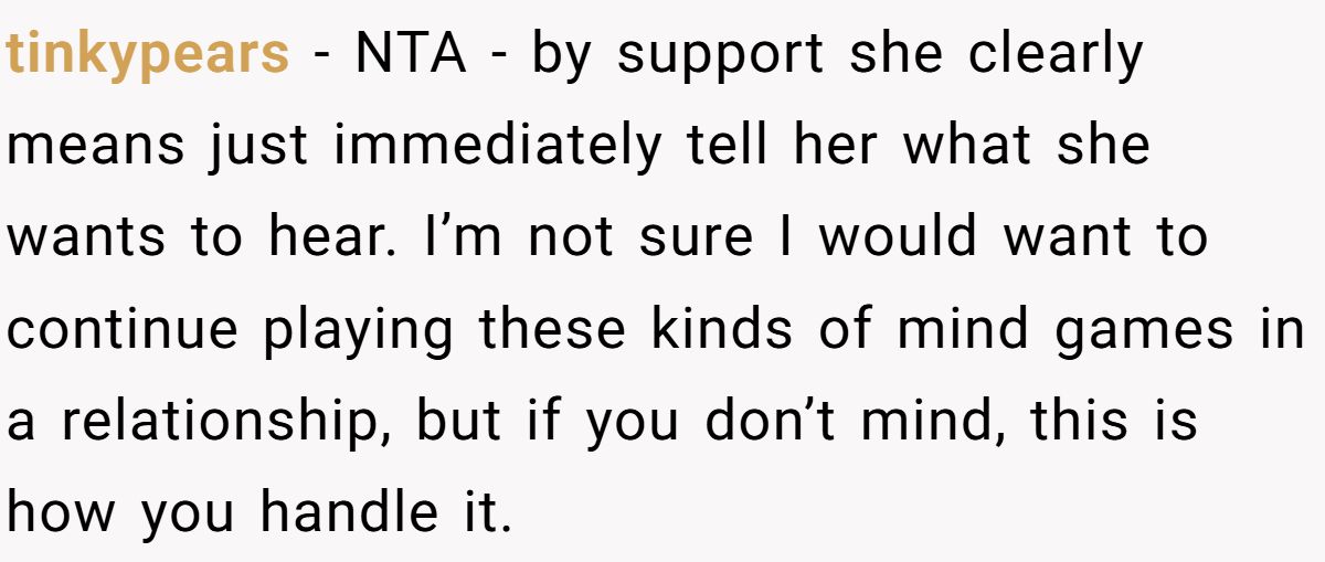 Others agreed he wasn’t to blame, pointing out that she asked for honesty but really wanted reassurance,and questioning whether this dynamic was healthy.