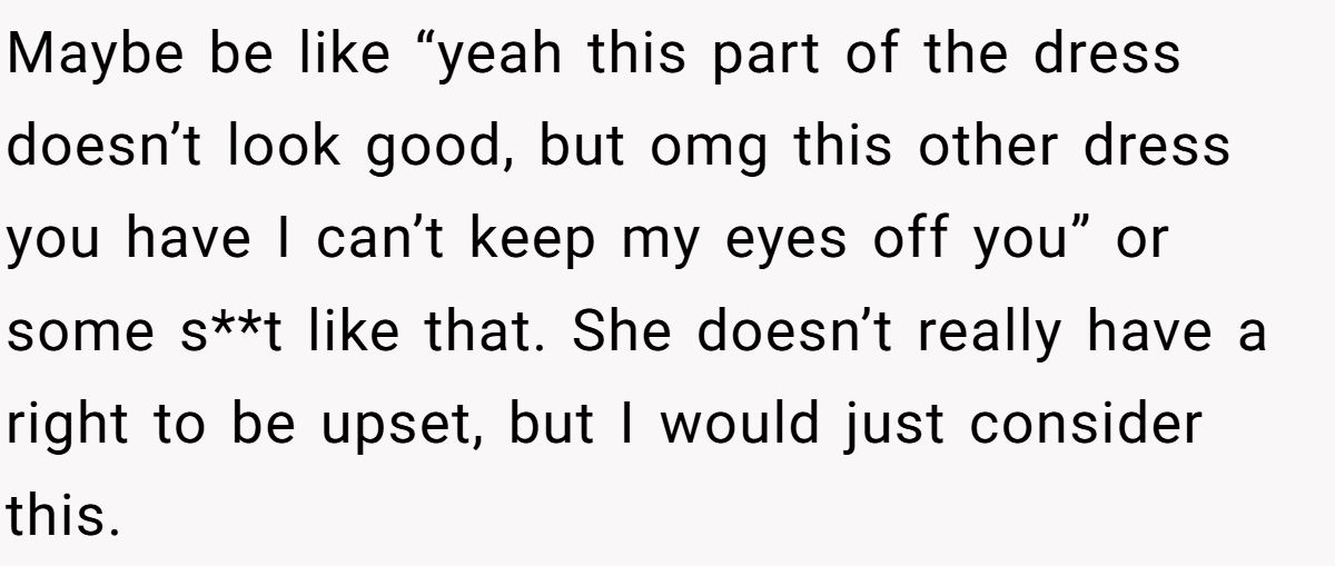 But standing in her shoes, the story looks different. She had already been feeling insecure, likely worried about how she looked and craving reassurance from the person she loved most. His initial compliments may have sounded empty, as though he couldn’t be bothered to look closely enough to tell the truth. When he finally confessed that the dress didn’t suit her, it felt like confirmation of her worst fears.