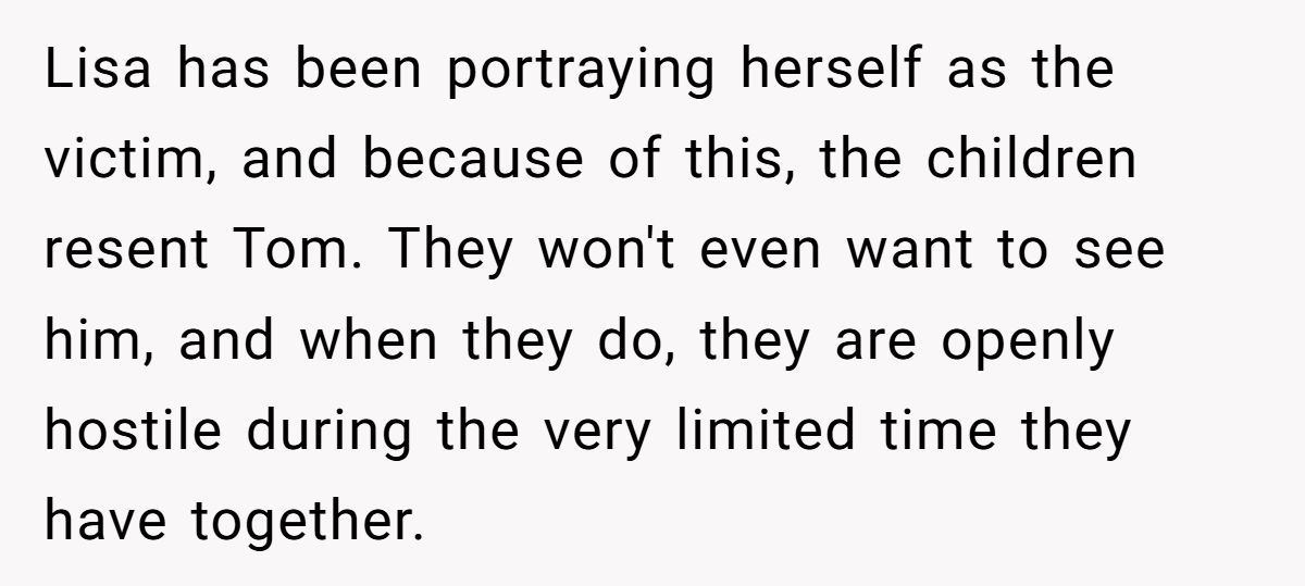 This situation dives deep into the emotional landmines of divorce, parenting, and truth-telling. Lisa’s actions weren’t just a white lie,they were a form of parental alienation, a tactic where one parent deliberately damages a child’s relationship with the other. According to a 2019 study in the Journal of Family Psychology, children who experience this kind of manipulation are more likely to develop anxiety, depression, and trust issues later in life.