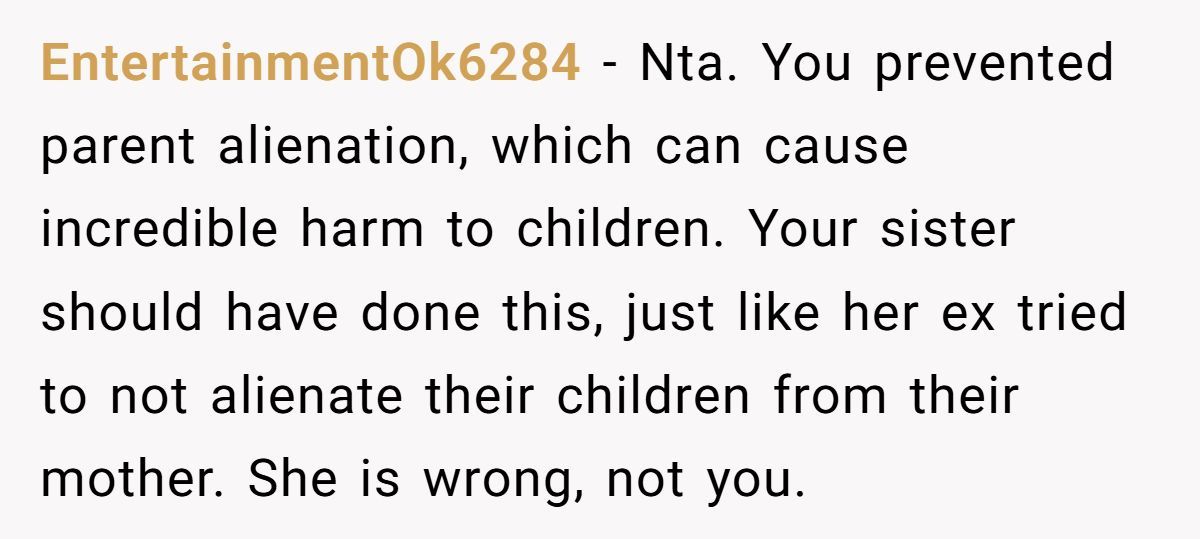 Other commenters slammed the sister for lying and cheating, saying OP isn’t the problem—she just stopped the emotional harm of parent alienation.