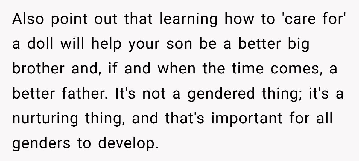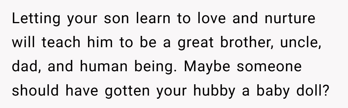 Many emphasized that playing with dolls fosters empathy and doesn’t “turn” boys into anything, it just helps them grow into caring people.