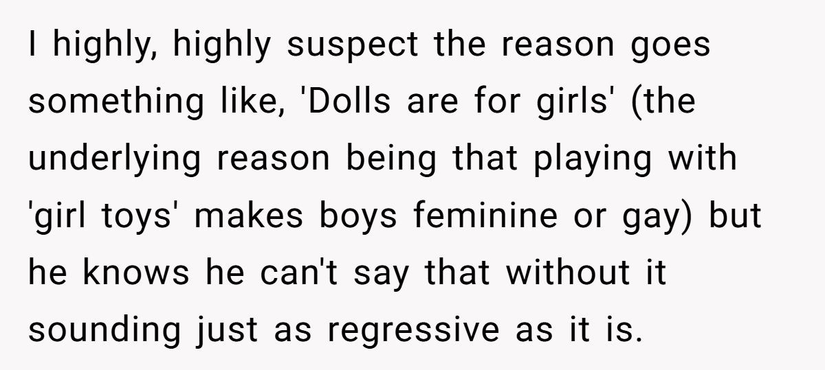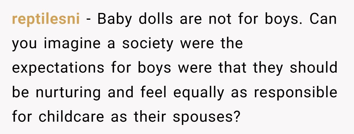 Many responses were sarcastic or outraged at the outdated mindset that boys shouldn’t play with dolls.