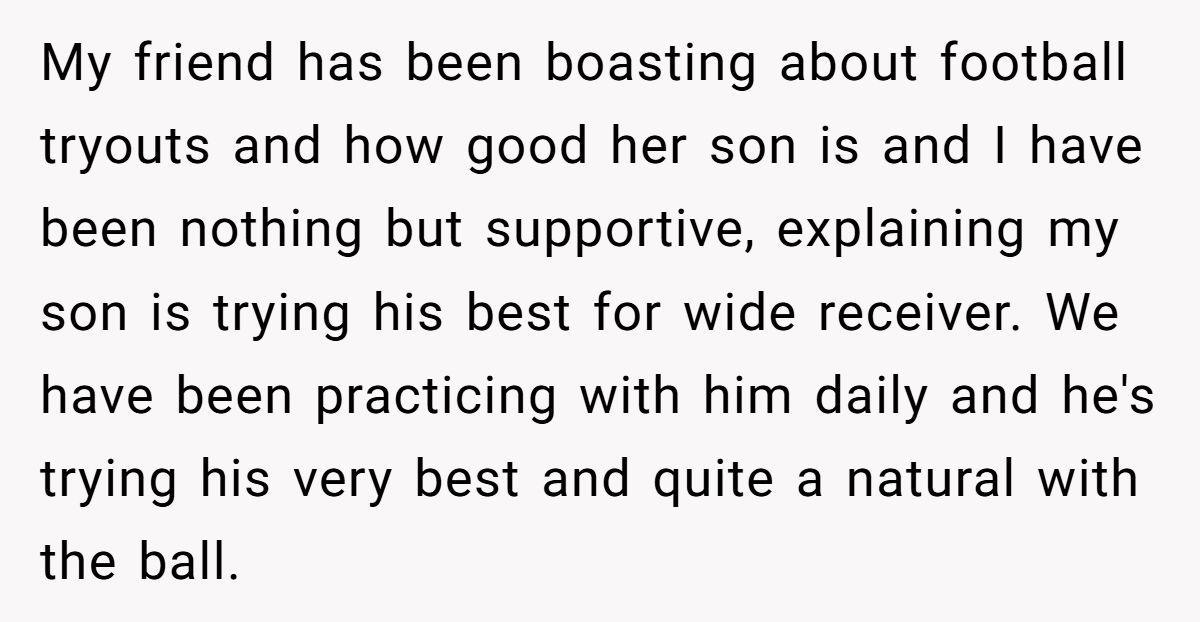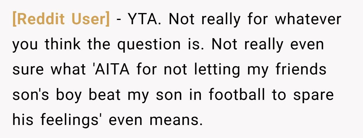 What should’ve been a moment of joy turned tense when the friend stormed off, clearly upset that her child was outshined. Was the mom wrong for letting her son go full throttle, or did her friend simply lose at more than just football?