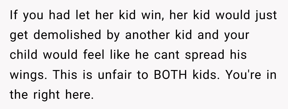Letting kids compete fairly, regardless of ability, is crucial. In this case, the Redditor’s son had trained, earned his moment, and played respectfully.