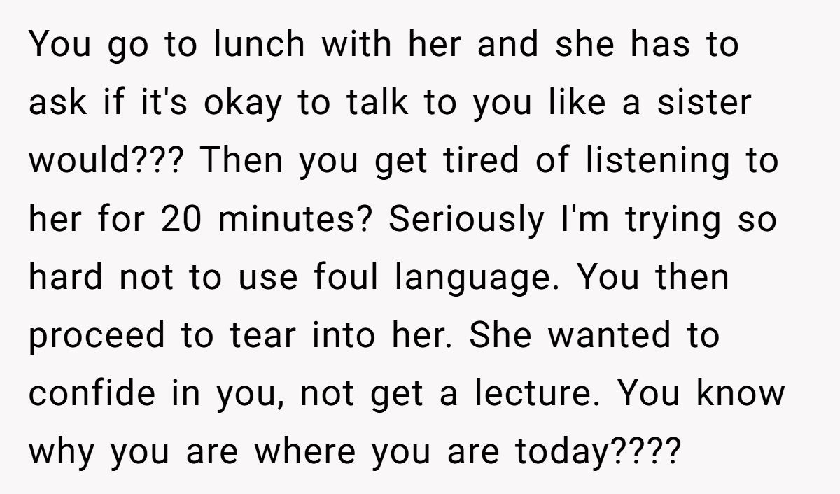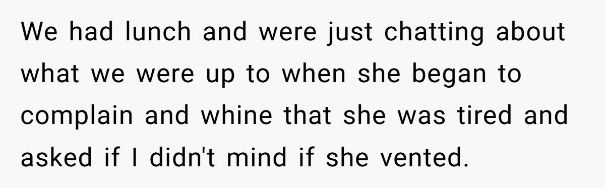 Imagine sitting down for a casual lunch with your sister, laughing over shared memories, catching up on life, when suddenly the mood shifts. One venting session turns into a tearful confrontation, and your honest words cut deeper than you intended.