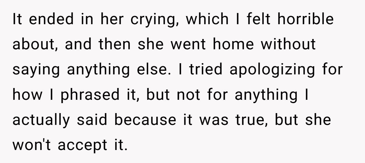 But that moment of brutal honesty backfired. Caitlin left the restaurant in tears, and the rest of the family quickly took her side, calling the OP insensitive and ungrateful.