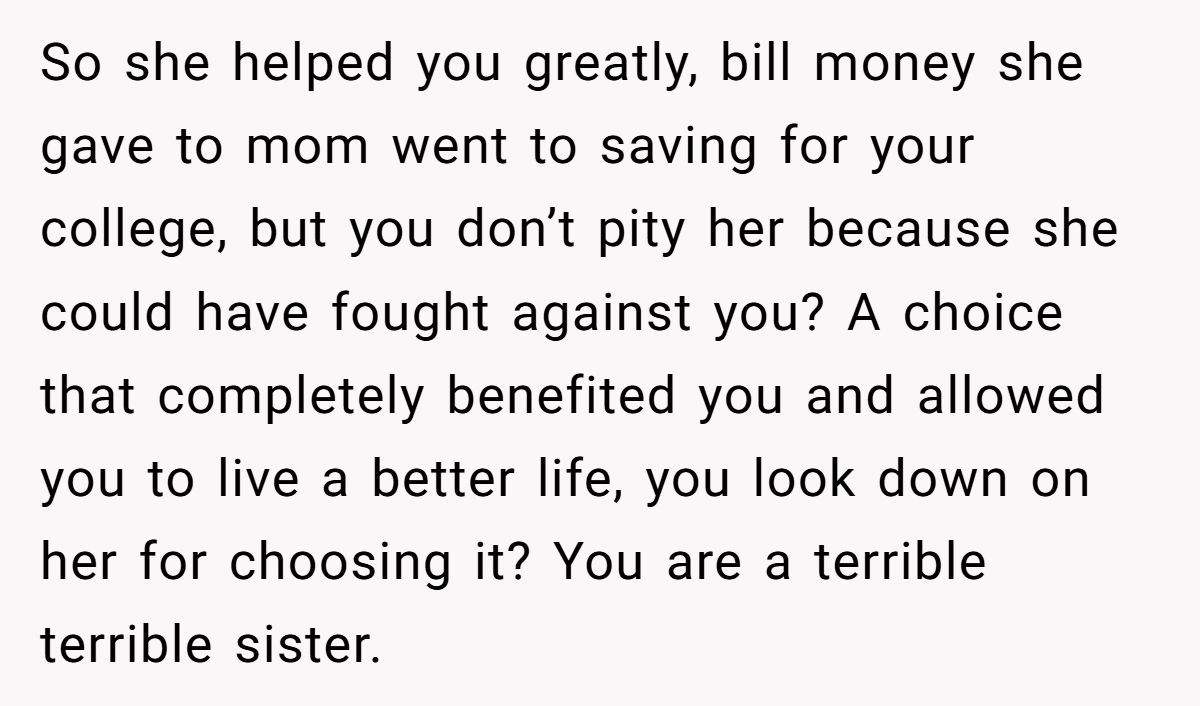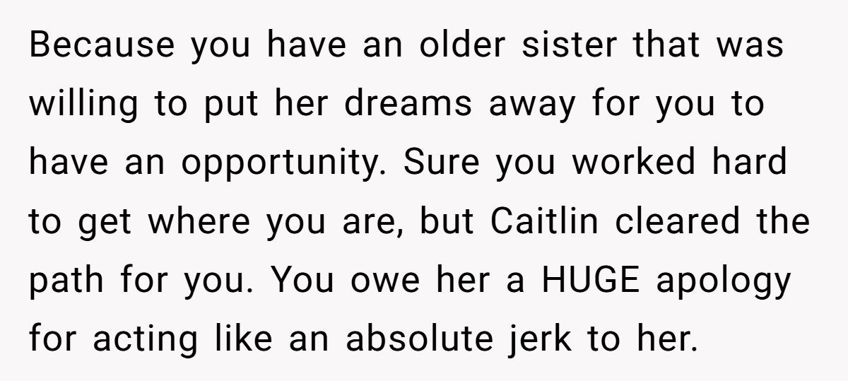 Many commenters called the sister selfish and entitled, saying Caitlin gave up her dream to support the family and deserved empathy, not judgment.