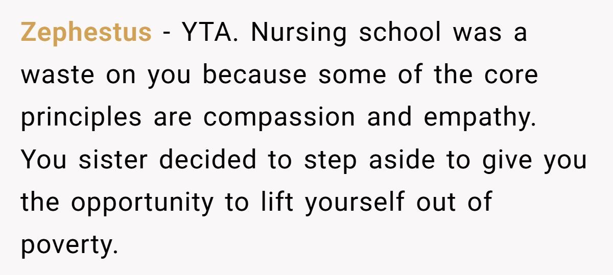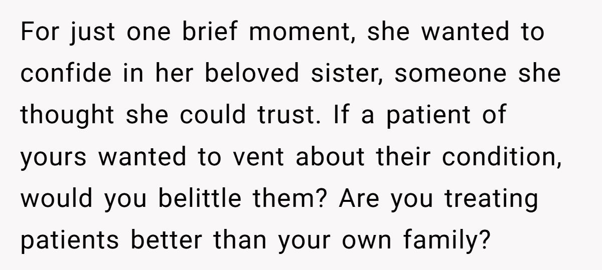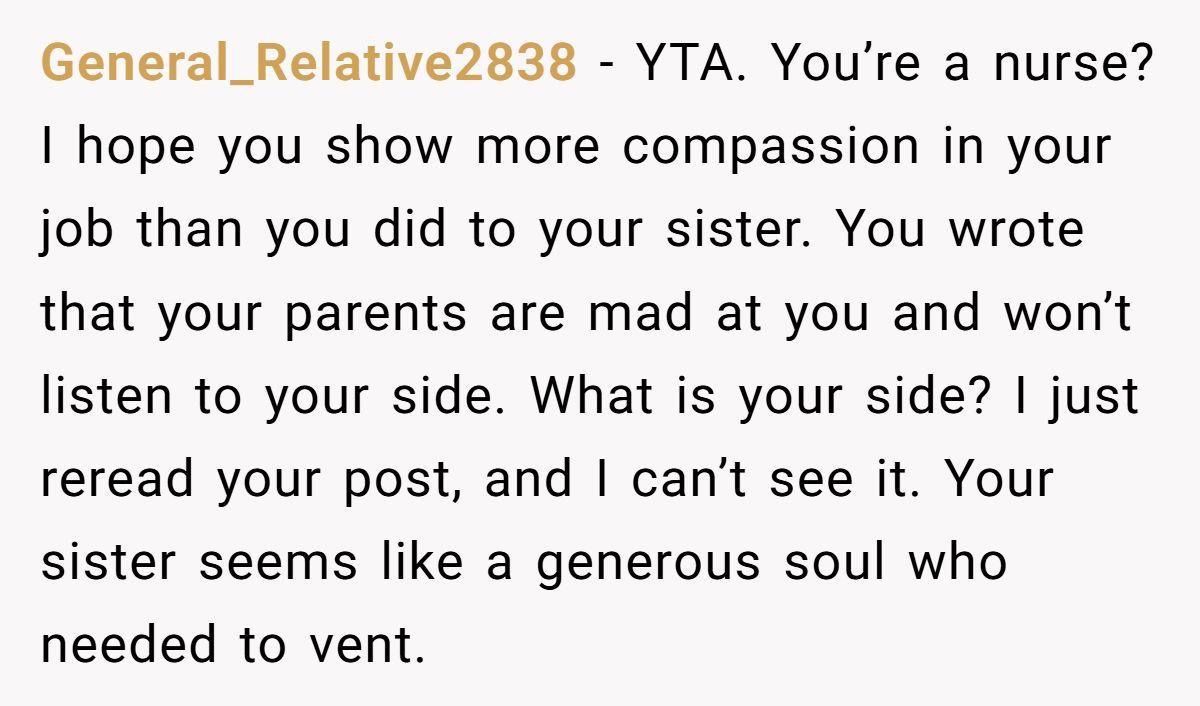Several users harshly criticized the nurse, saying Caitlin gave up college so she could succeed, and all she wanted now was to vent. Instead of empathy, her sister belittled her, proving she lacked the compassion expected from someone in healthcare.