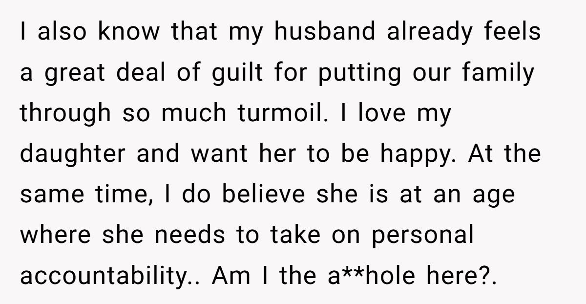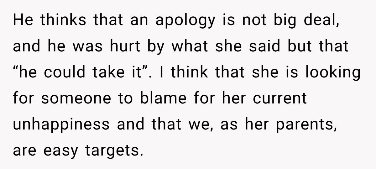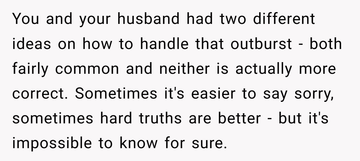 Did the mother make the right call by silencing the apology to shield her husband from guilt? Or did she miss a rare opportunity to help her daughter feel seen?