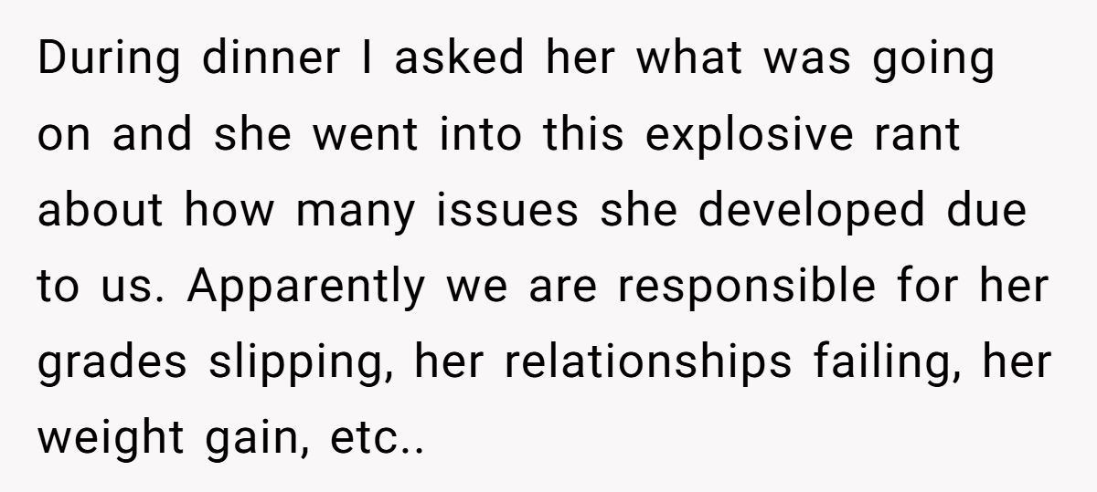 The daughter snapped—her words sharp and raw. She accused her parents of stealing her childhood, blaming her struggles on the years lost to her father’s illness. Her grades, her friends, her weight—all traced back to that dark time.