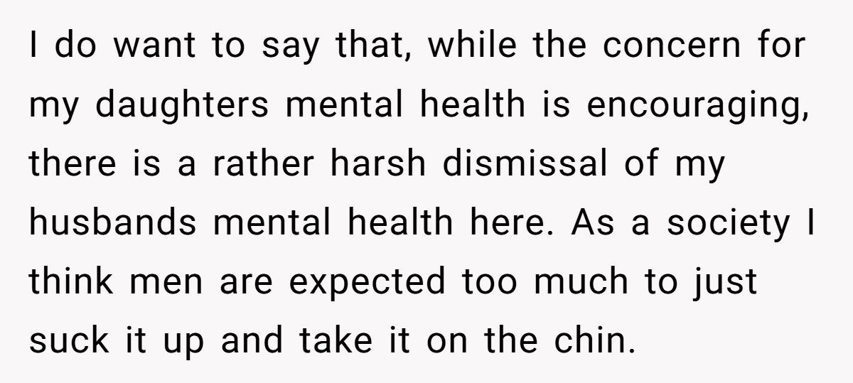 So when their daughter aimed her pain at him, the mother snapped into protection mode. She couldn’t allow him to shoulder more than he already had. Especially not this.