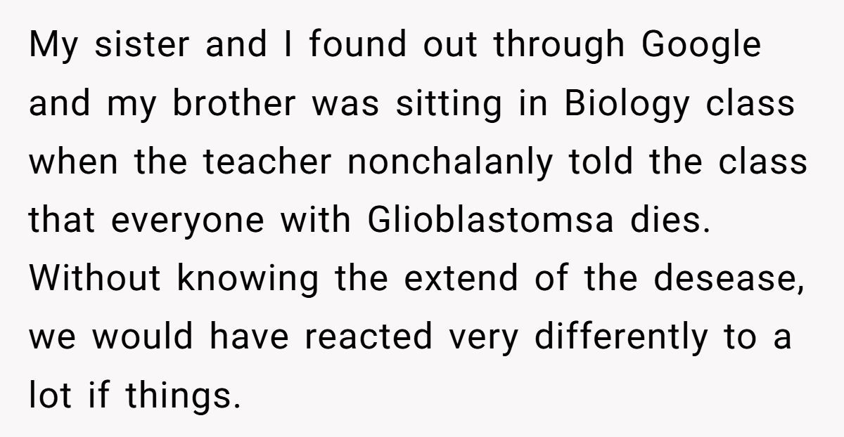 But her daughter’s pain was real too. She had spent some of the most delicate years of her life feeling invisible. School dances missed, conversations cut short by doctor appointments, birthdays overshadowed by hospital visits. She wasn’t angry that her dad got sick, she was angry that no one noticed how much it hurt her too.