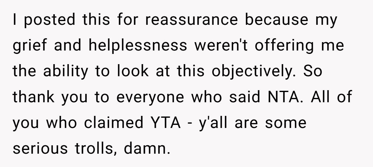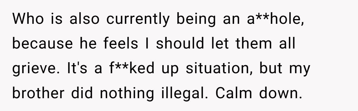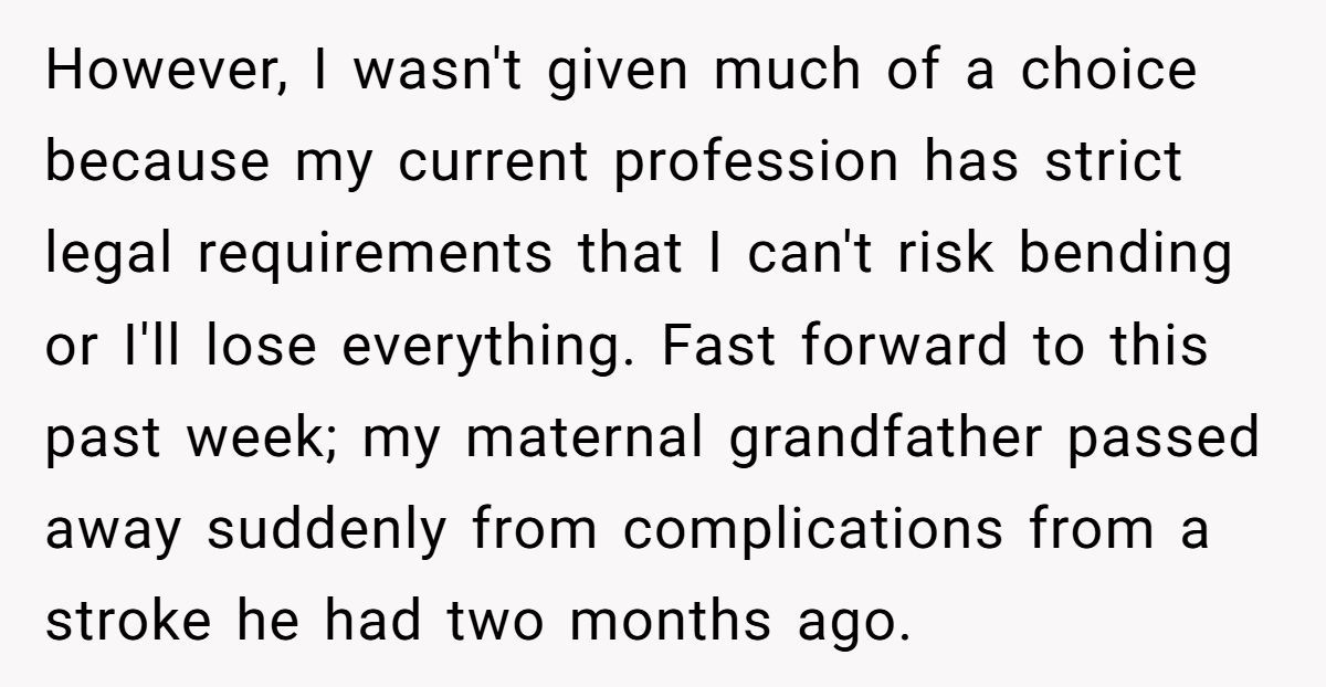 From a sociological lens, Professor Sarah Rankin in a study on family justice found that “families often pressure members into complicity to preserve harmony—even when the act is unethical.” OP refused. He chose system integrity over peace—but now faces collective grief backlash.