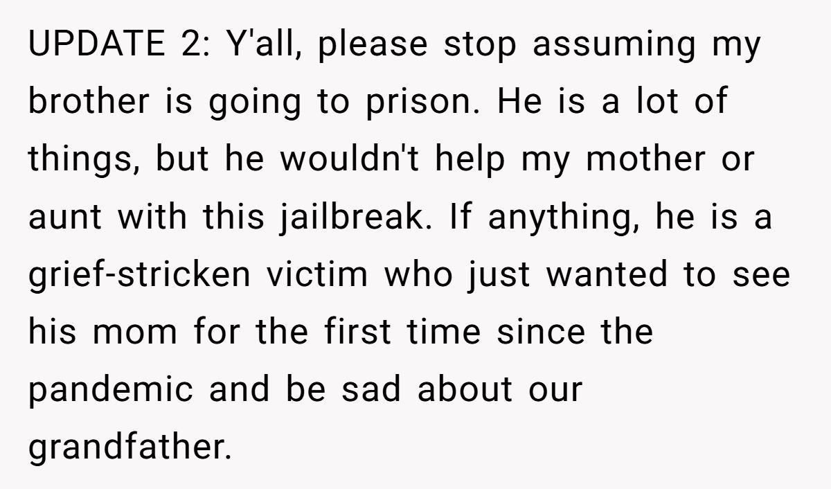 Grieving a loved one is hard. But using that grief as a smokescreen to commit fraud and stage a makeshift jailbreak? That’s a whole other level of selfish.