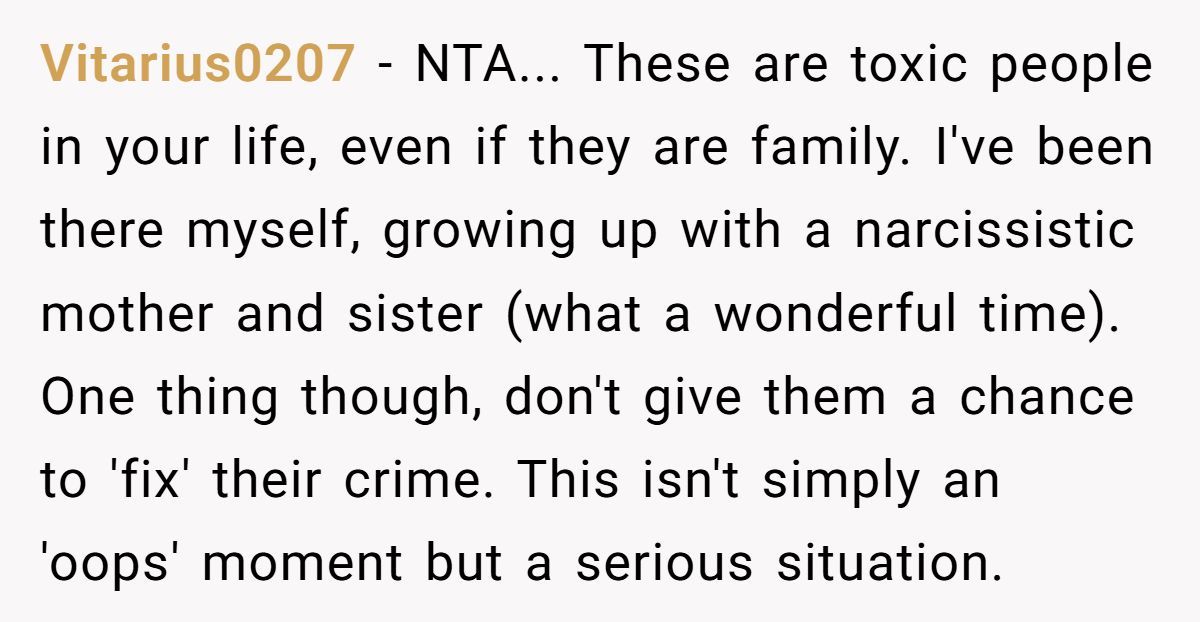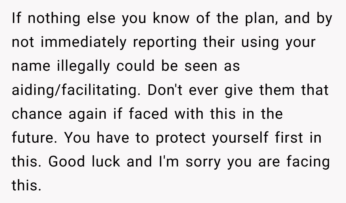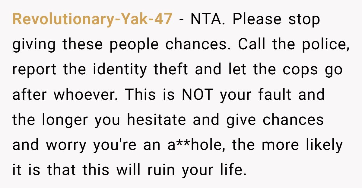 This commenter claimed that the family’s actions forced the Redditor into a no-win situation, advising her to report the crime to avoid personal repercussions