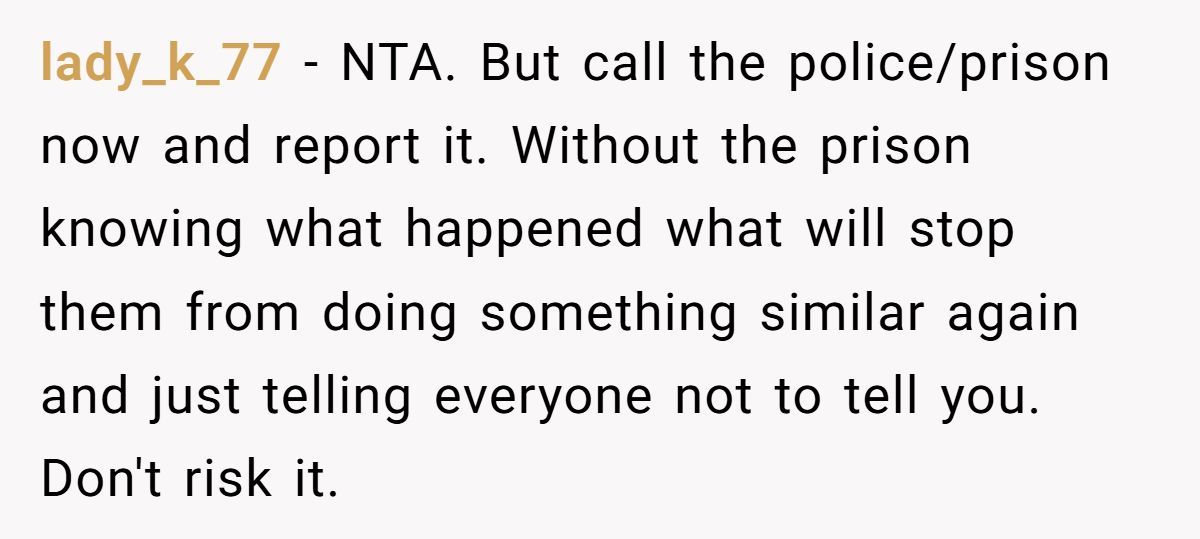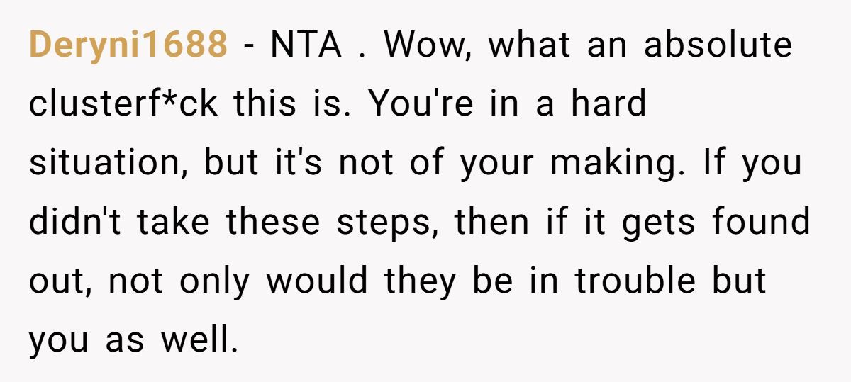 To protect her career and license, she reported the crime, sparking family accusations of insensitivity. Reddit’s buzzing over this legal and emotional drama. Was she right to call the police, or should she have let it slide? Dive into the chaotic family fallout below!