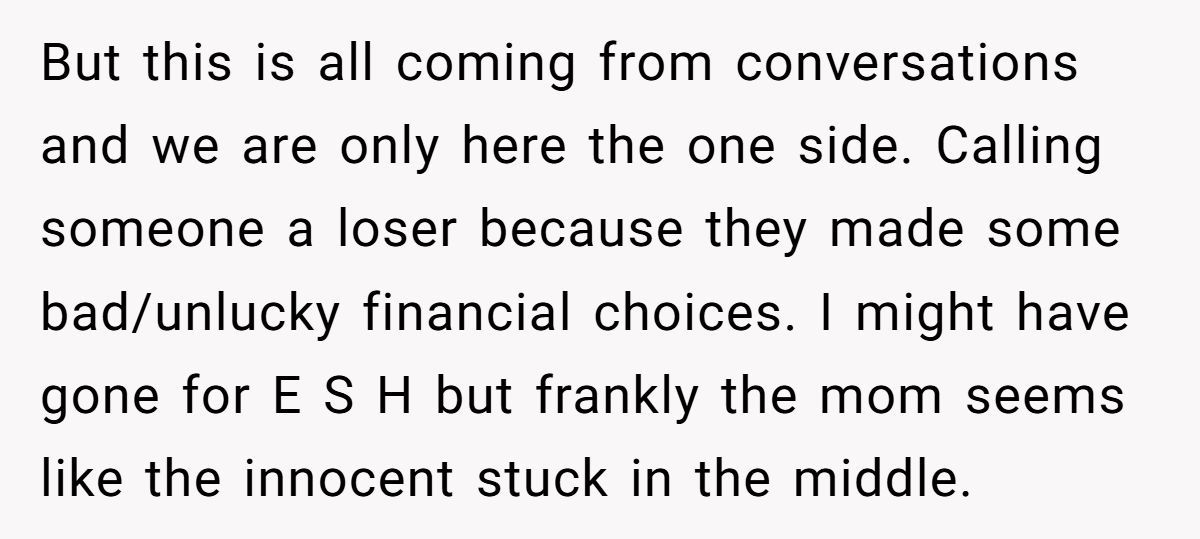There’s still a path forward, if both parties are willing. The OP could apologize for the “loser” label, not because the emotion was wrong, but because mutual respect will be key to rebuilding trust.