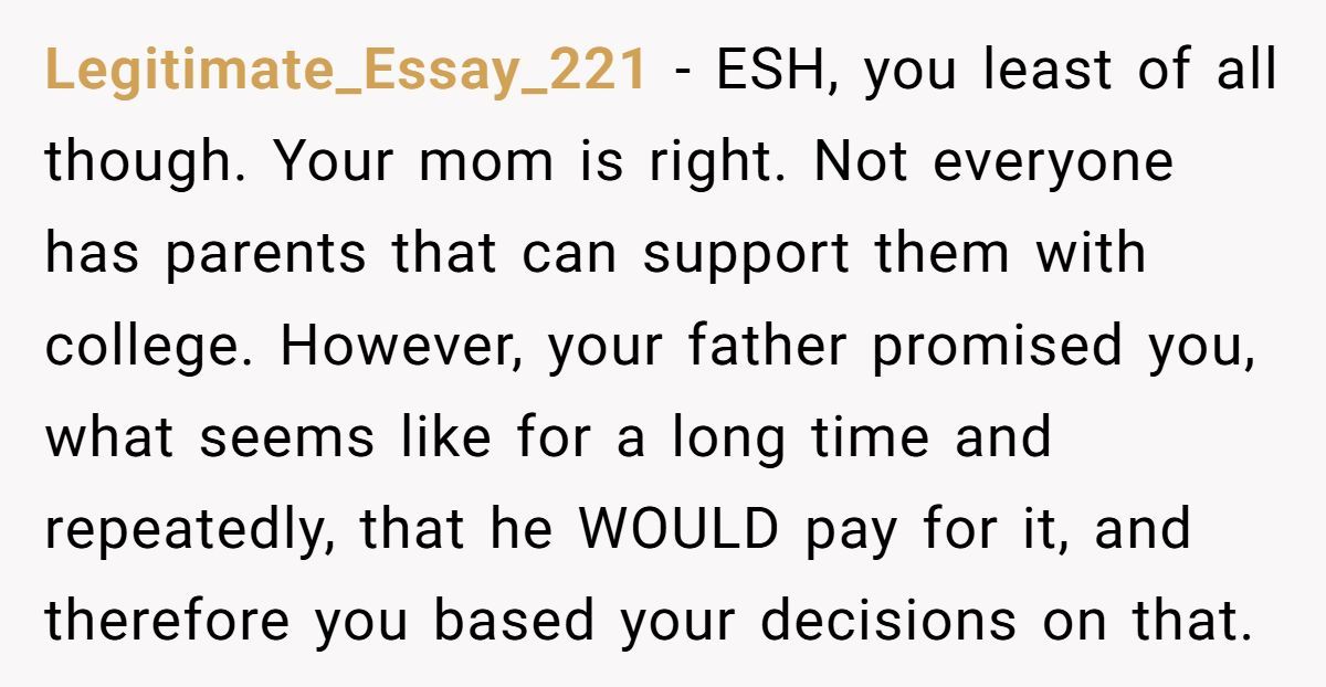 Commenters strongly sided with OP, emphasizing that the father broke a clear financial promise and shouldn’t be excused just because others have had to pay for college themselves.