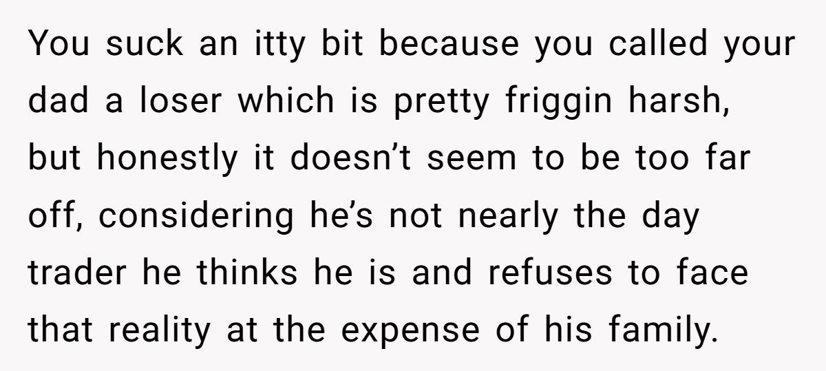 The confrontation got heated. Emotions exploded. Words were said—like calling dad a “loser.” Now the OP (Original Poster) is left wondering: Was the outburst justified, or did they go too far?