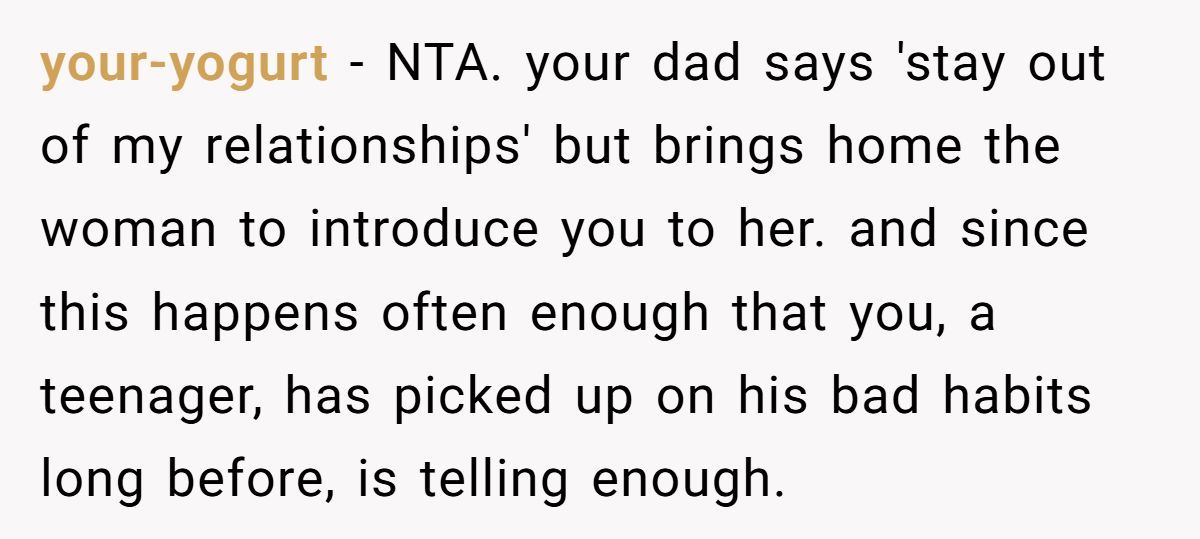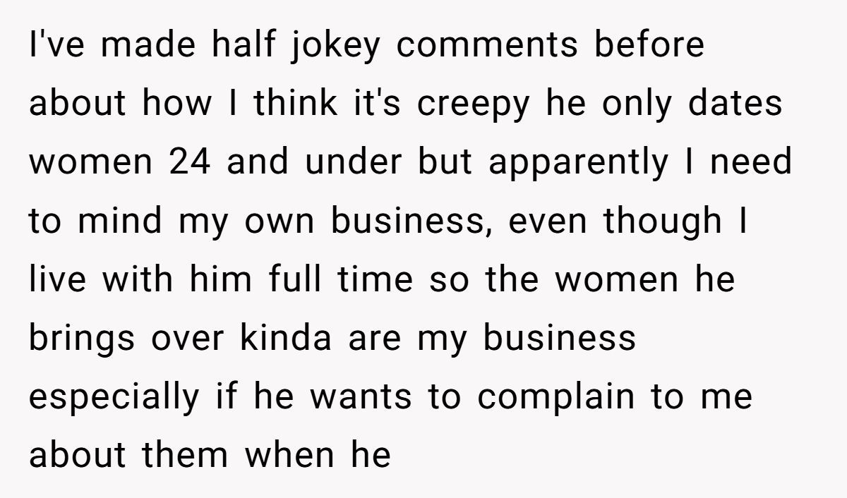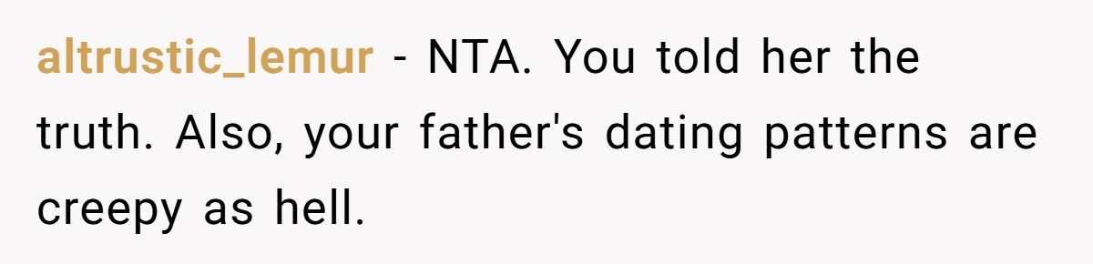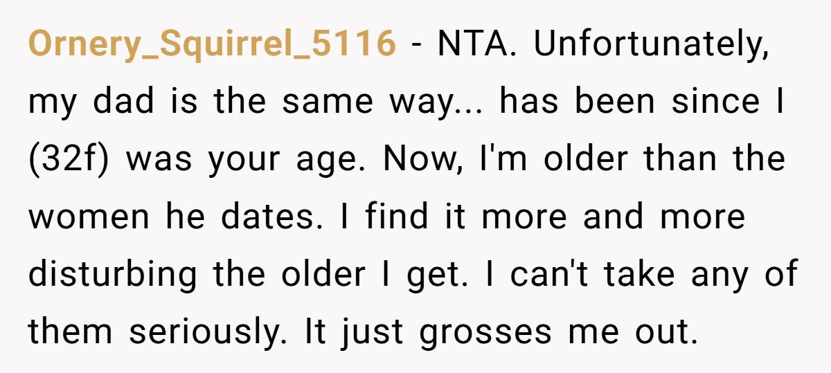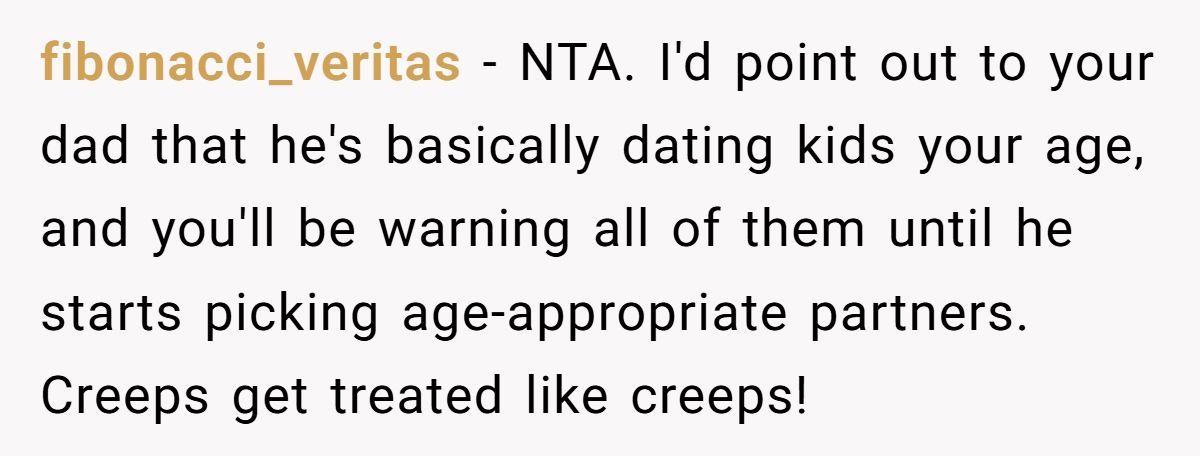 Most commenters strongly supported the OP, calling her dad’s dating behavior creepy and predatory.