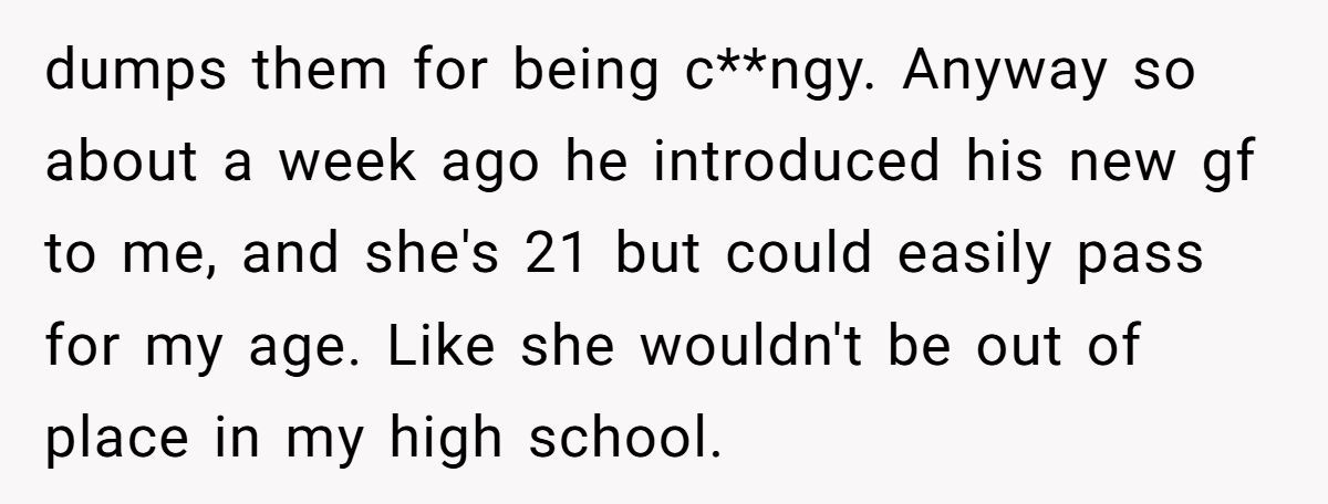 Imagine being sixteen and watching your dad, who’s pushing fifty, bring home yet another girlfriend barely old enough to order a cocktail. That was daily life for one Redditor, a teenager who finally reached her breaking point when her father introduced his latest flame: a 21-year-old who genuinely believed she had a future with him.