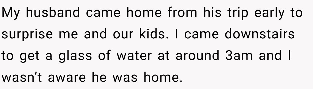 Picture this: a quiet house, the hush of early morning wrapping everything in darkness. A woman pads softly down the hallway, still groggy, clutching a glass of water. She doesn’t know that just beyond the kitchen doorway, her husband is waiting in the shadows, eager to surprise her after returning early from a trip.