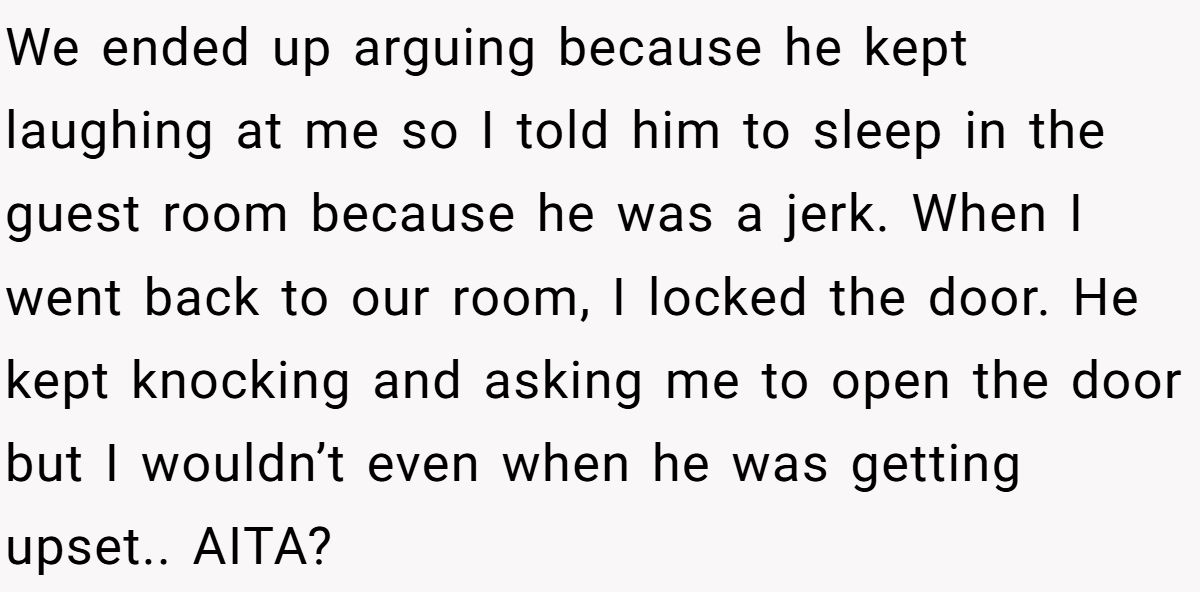 In the end, what began as a husband’s clumsy attempt at romance turned into a midnight rupture neither of them expected. His intentions were loving, but the impact left his wife feeling frightened and dismissed. Was her locked door an act of self-preservation, or an overreaction that shut out a chance to reconnect?