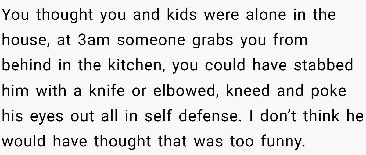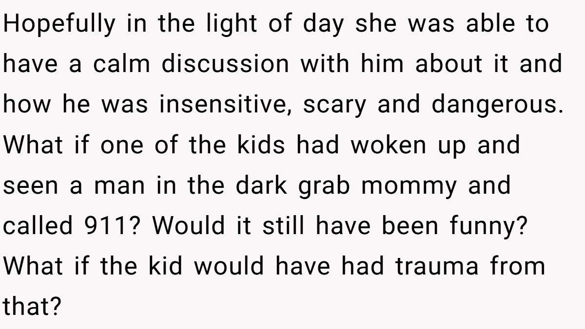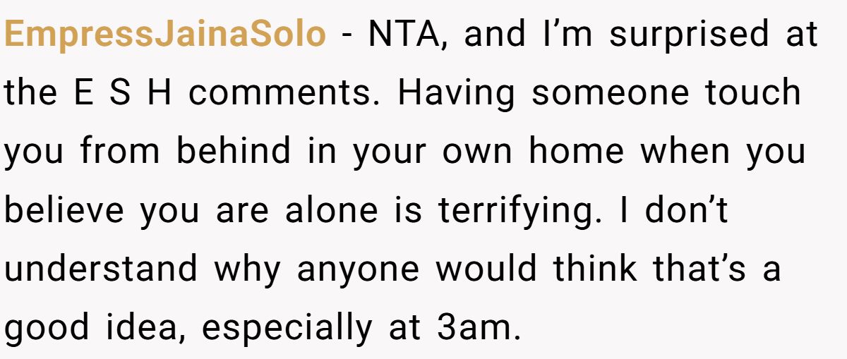 A few commenters were stunned that anyone would blame the wife at all, pointing out how unsettling, and downright frightening, it is to be grabbed in the dark: