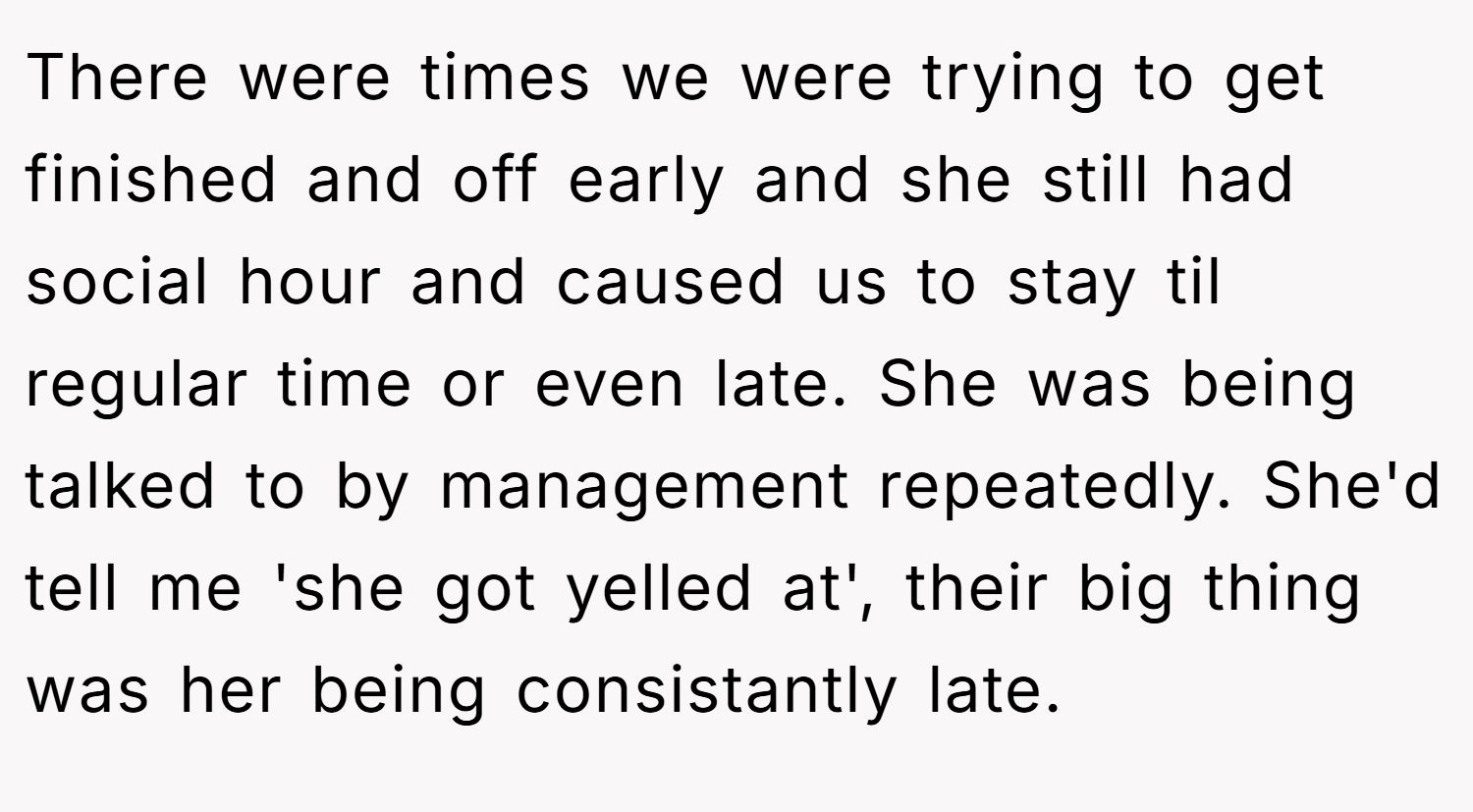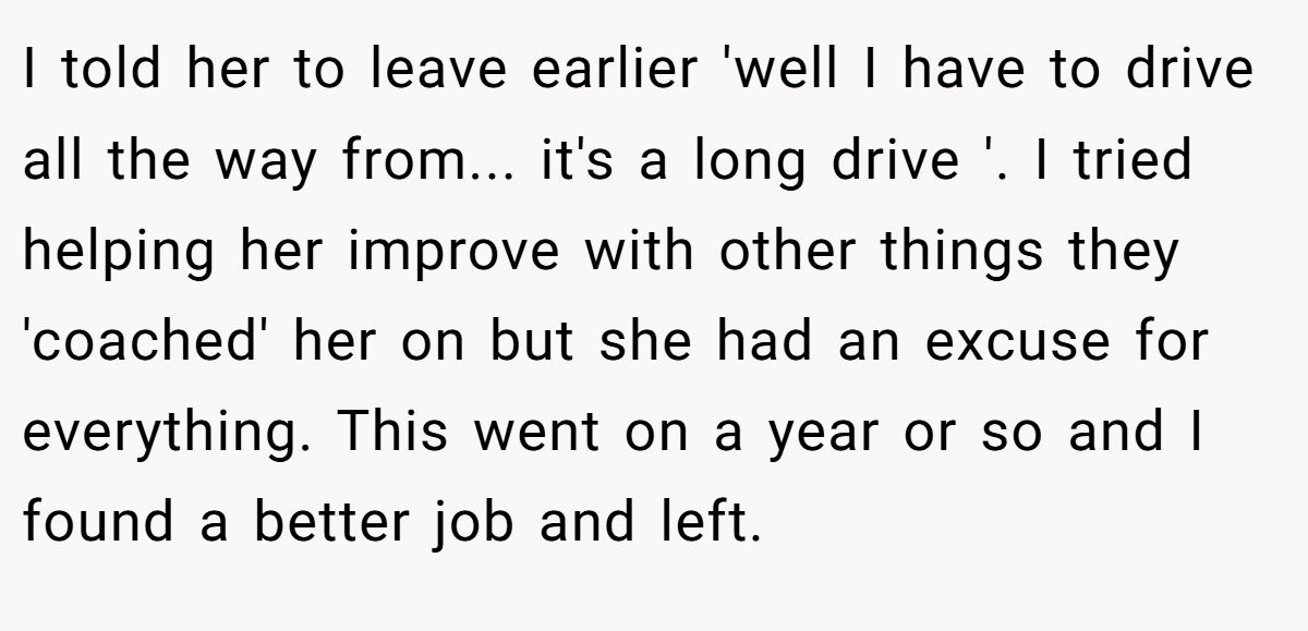 Their friend — let’s call her Tardy Tina — had made lateness an art form. She strolled in late, ignored deadlines, and treated the office more like a coffee shop than a workplace. For over a year, management handed out warnings like candy. Nothing changed.