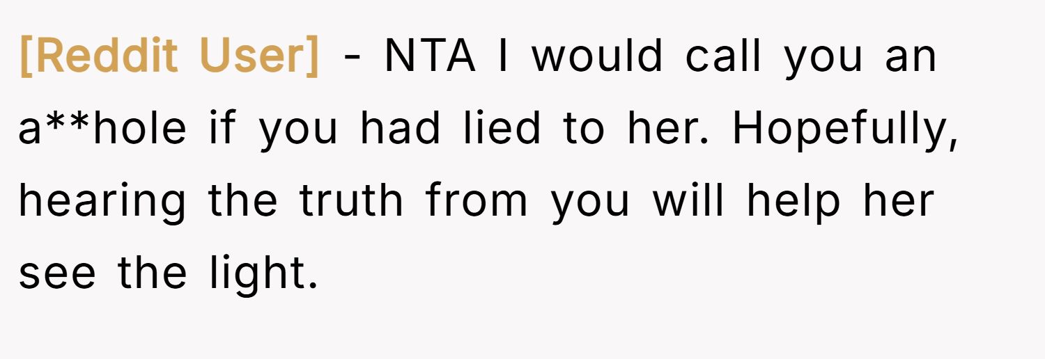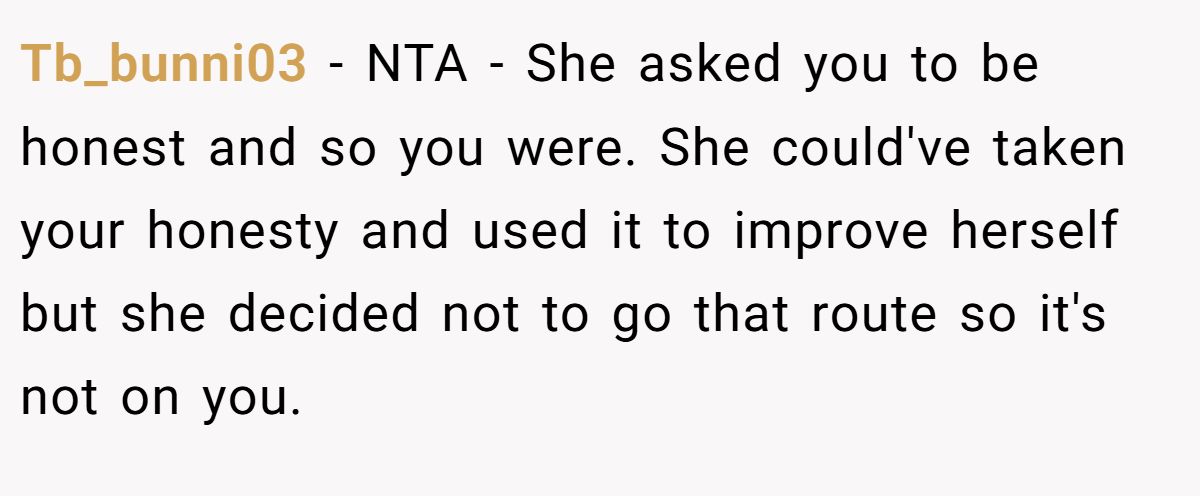 One Redditor didn’t hold back, saying they’d have called the poster an a**hole if they’d lied. For them, telling the truth wasn’t just acceptable — it was necessary. As Charles Butler might say, honesty may hurt, but false kindness delays growth.