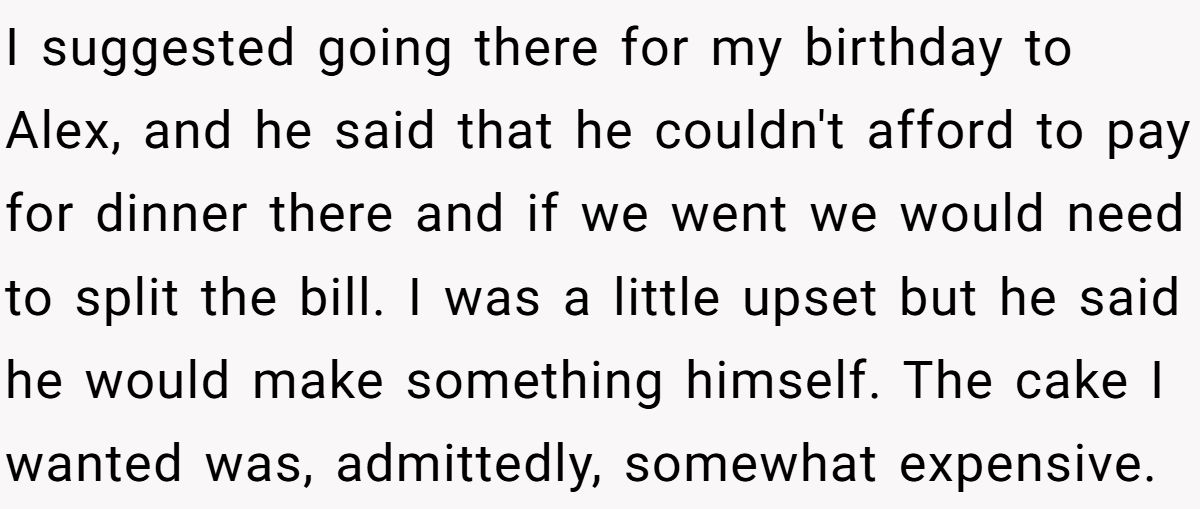 Was she heartless for wishing her birthday felt more special, or was Alex unfair to expect her to pretend? If the person you love gives you their best when it falls short, do you swallow your feelings, or speak them out loud?