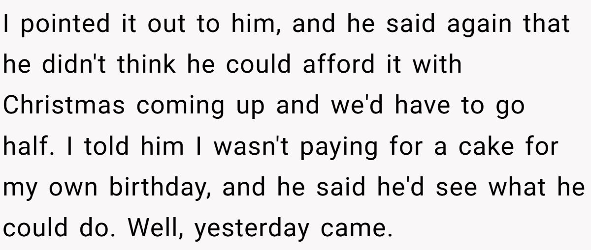 According to her account, she’d always loved birthdays. Growing up, her parents saved up to splurge on the perfect cake, a tradition that made her feel special, cherished, seen. So this year, with Alex out of work and Christmas around the corner, she knew things were tight, but she still hoped for something a little extra. She’d even hinted that all she really wanted was her favorite cake from the local bakery, the one she’d been talking about for months.