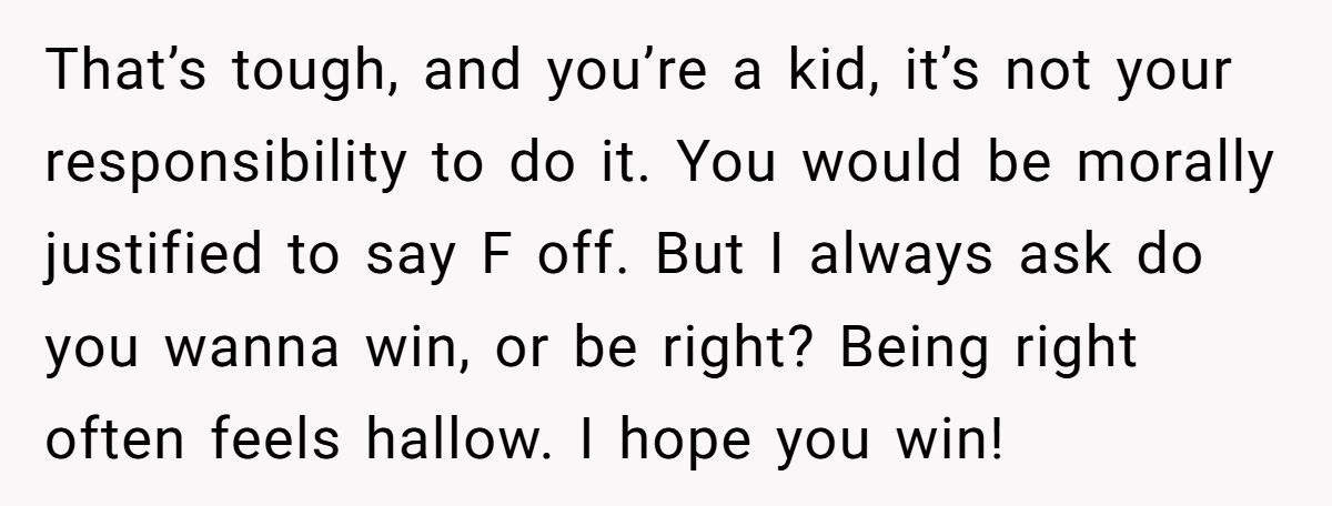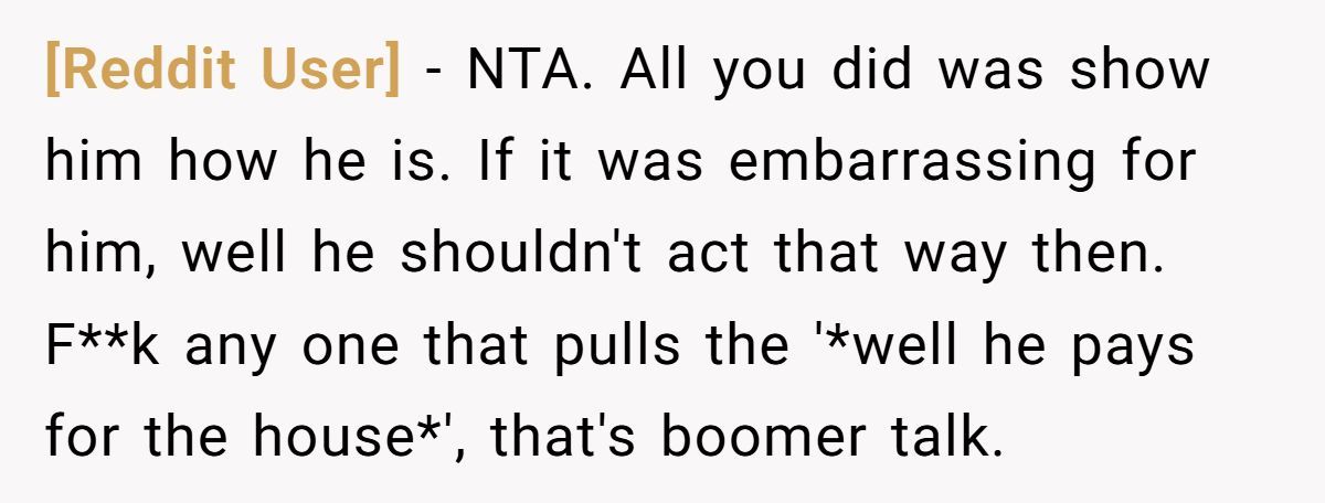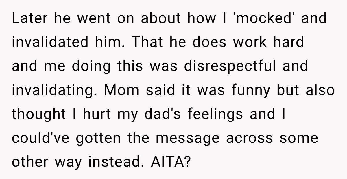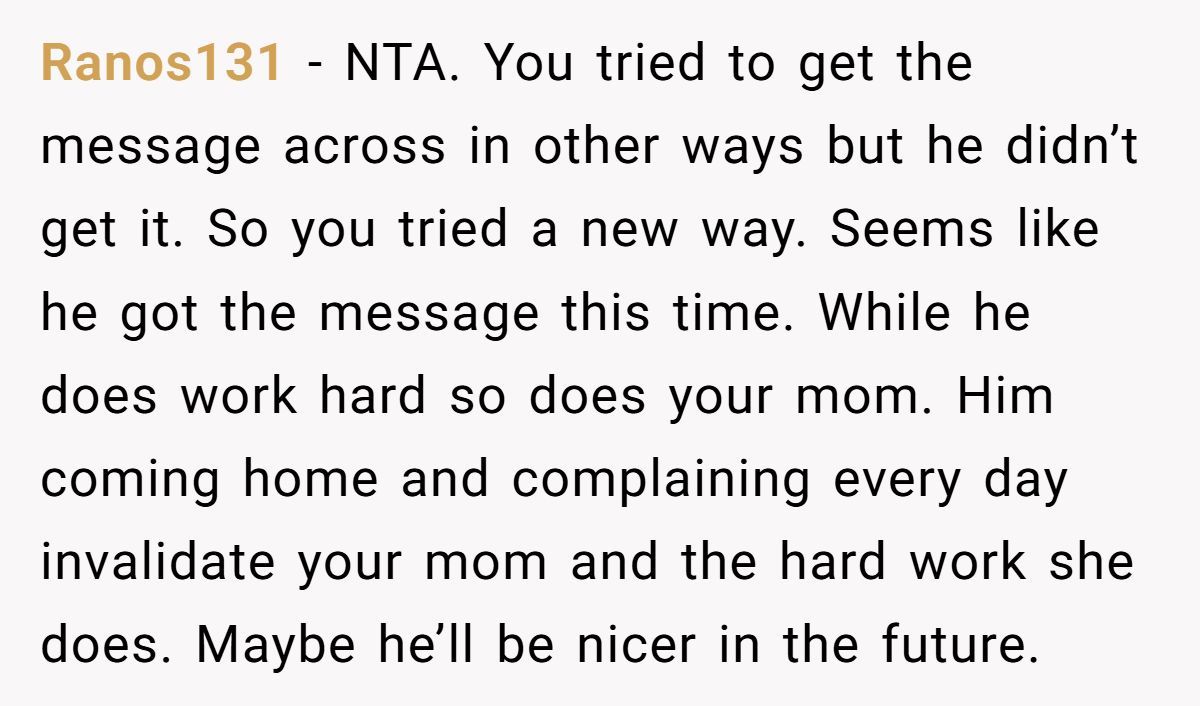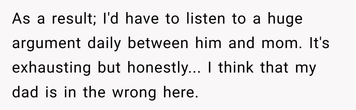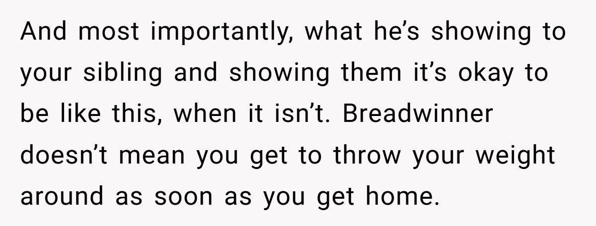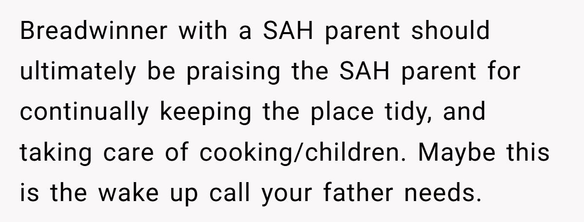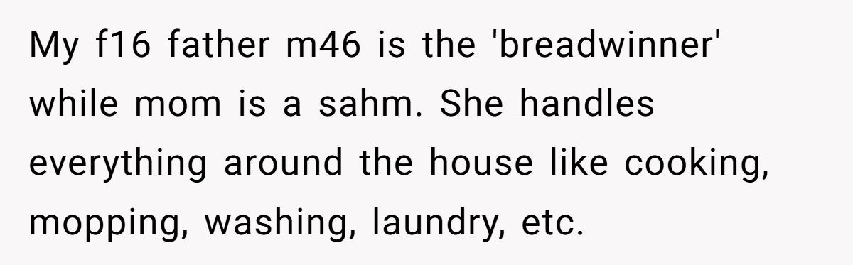 This wasn’t just about a teenager pushing boundaries—it was about emotional exhaustion. Living with someone who criticizes instead of connects wears on a family. And while her dad claimed the “breadwinner” badge with pride, it didn’t give him license to belittle those holding down the emotional labor.