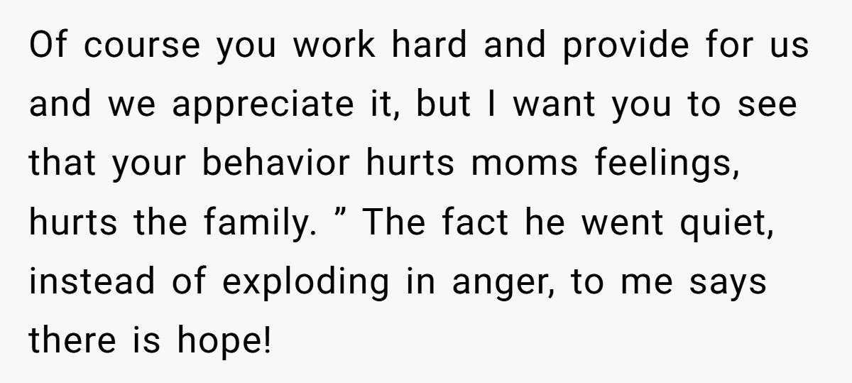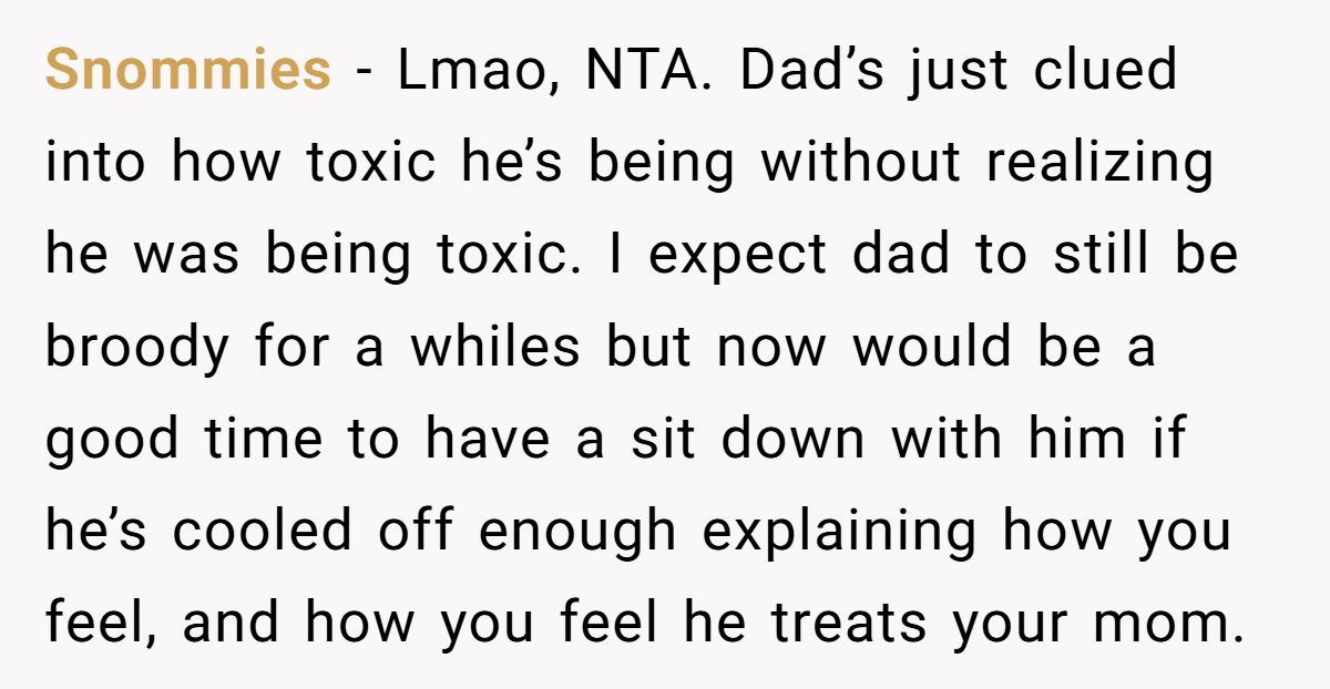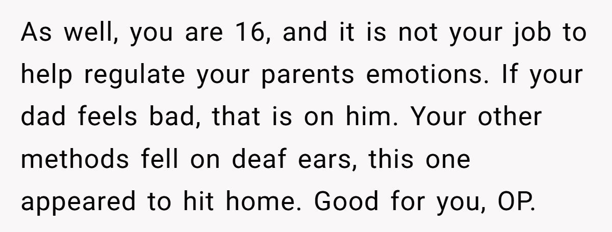 This teen held up a mirror to their dad’s behavior, and it struck a nerve. He didn’t explode—he went quiet, which might mean it finally got through.