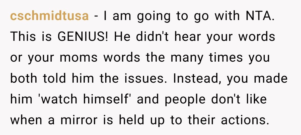 This teen simply mimicked their dad’s toxic behavior and it worked. The dad didn’t like seeing himself reflected, but maybe now he understands how it feels.
