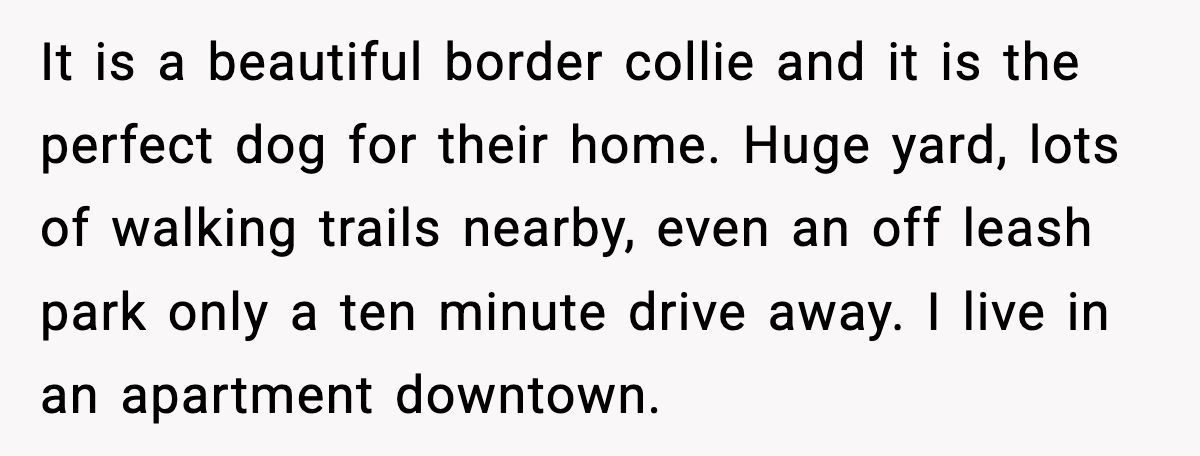 Navigating family feuds is tricky, but throwing a beloved pet into the mix? That’s next-level drama. This Redditor, a 55-year-old grandma, faced a dilemma when her son, Carlos, used his border collie as a weapon in his post-divorce grudge match. After cheating and leaving his wife and kids, he parked the dog in Mom’s small apartment, barely caring for it himself. Grandma’s bold move—returning the pup to its original home with a big yard and happy kids—feels like a win for the dog’s happiness.