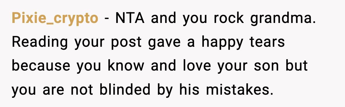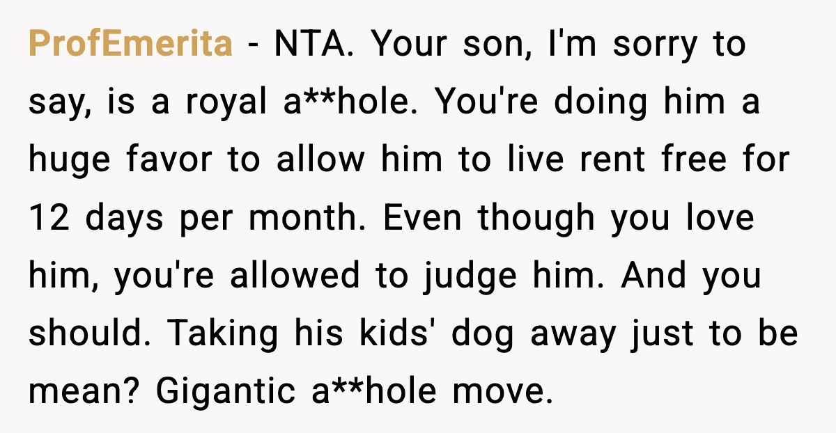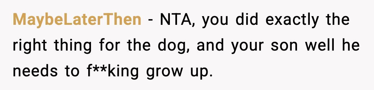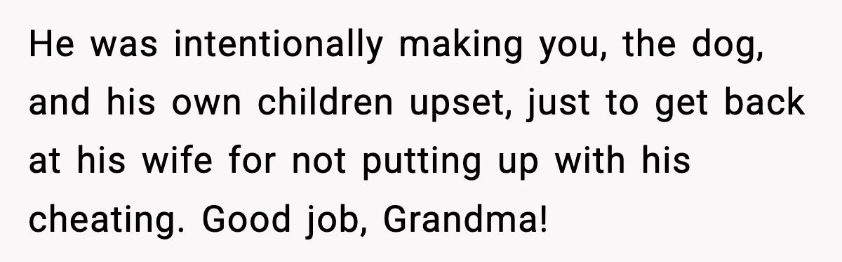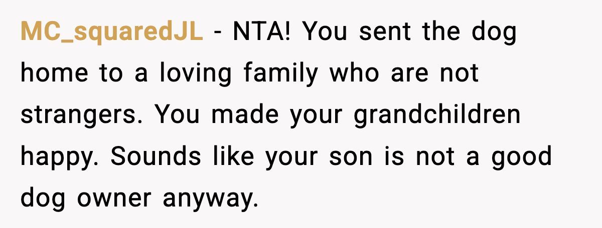 One user praised Grandma, saying her son’s selfishness ignored the dog and kids