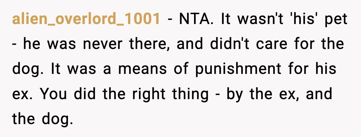 One user said the dog wasn’t his—it was a tool to punish his ex