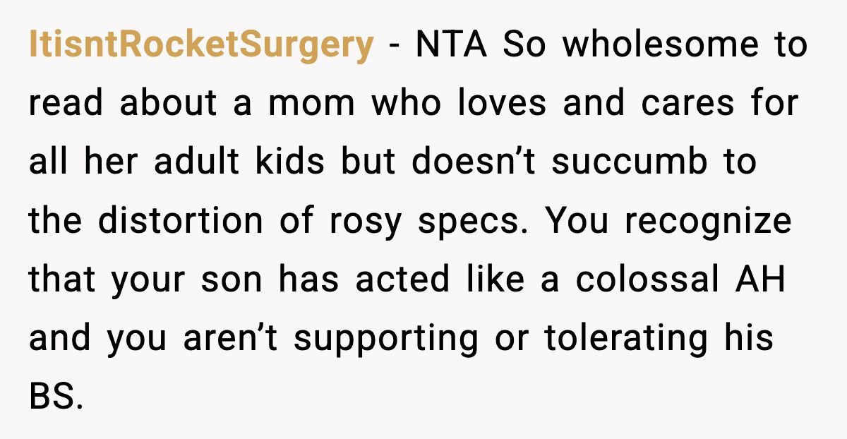 Another cheered Grandma’s clarity, refusing to enable Carlos’s cruel antics