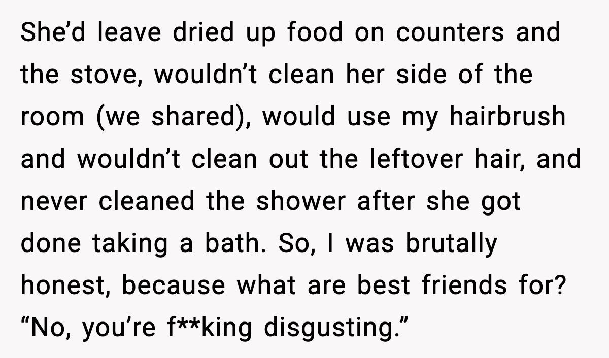 Was This Woman A Jerk For Calling Her Best Friend “Disgusting” In Front Of A Potential Roommate?