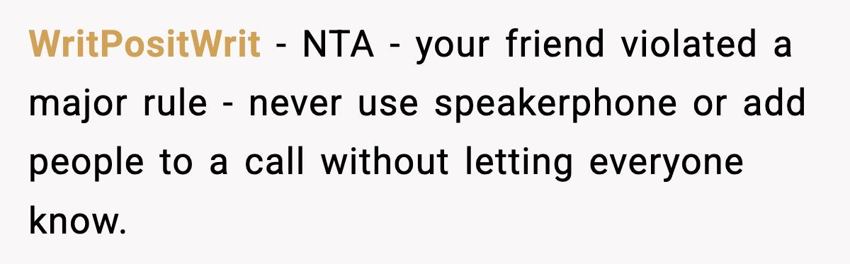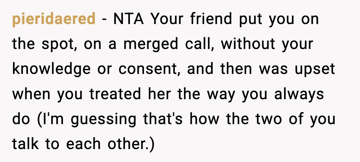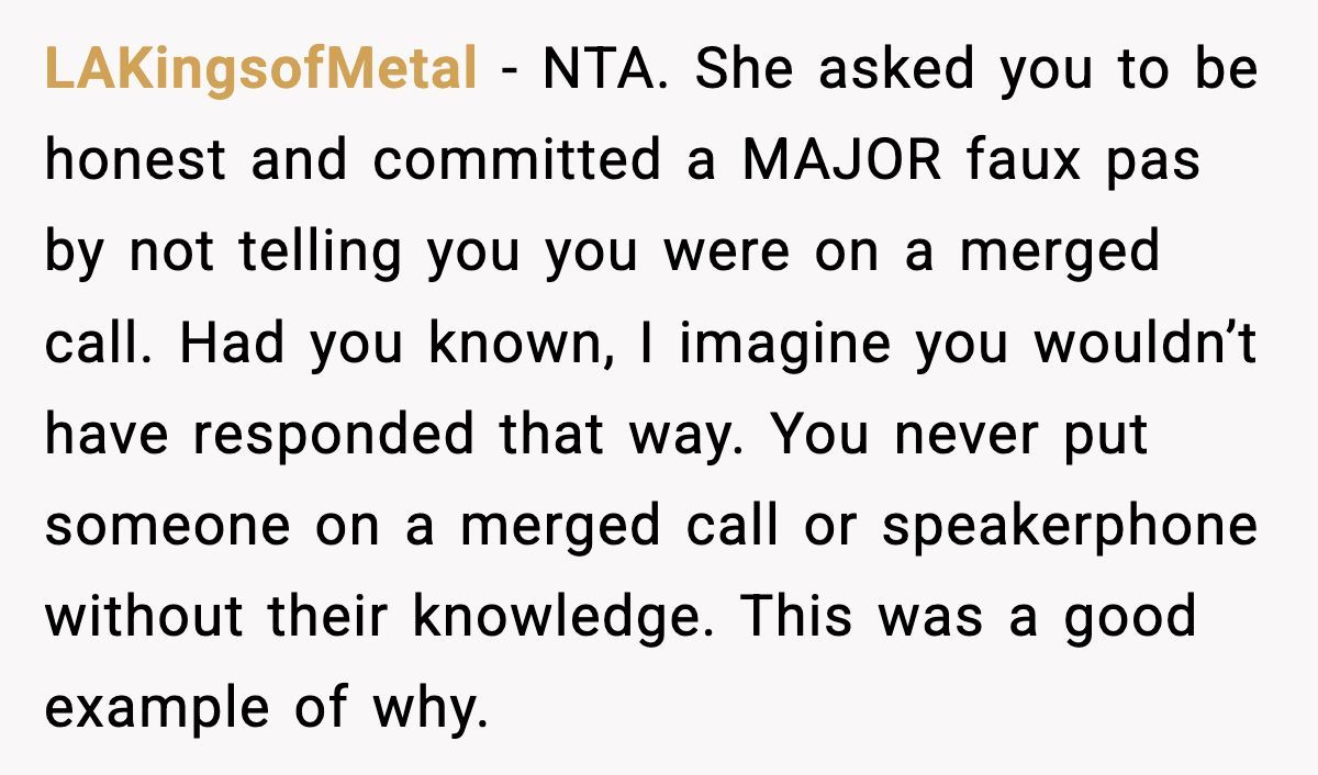 One user said T’s secret merged call was a major faux pas, justifying the Redditor’s response.