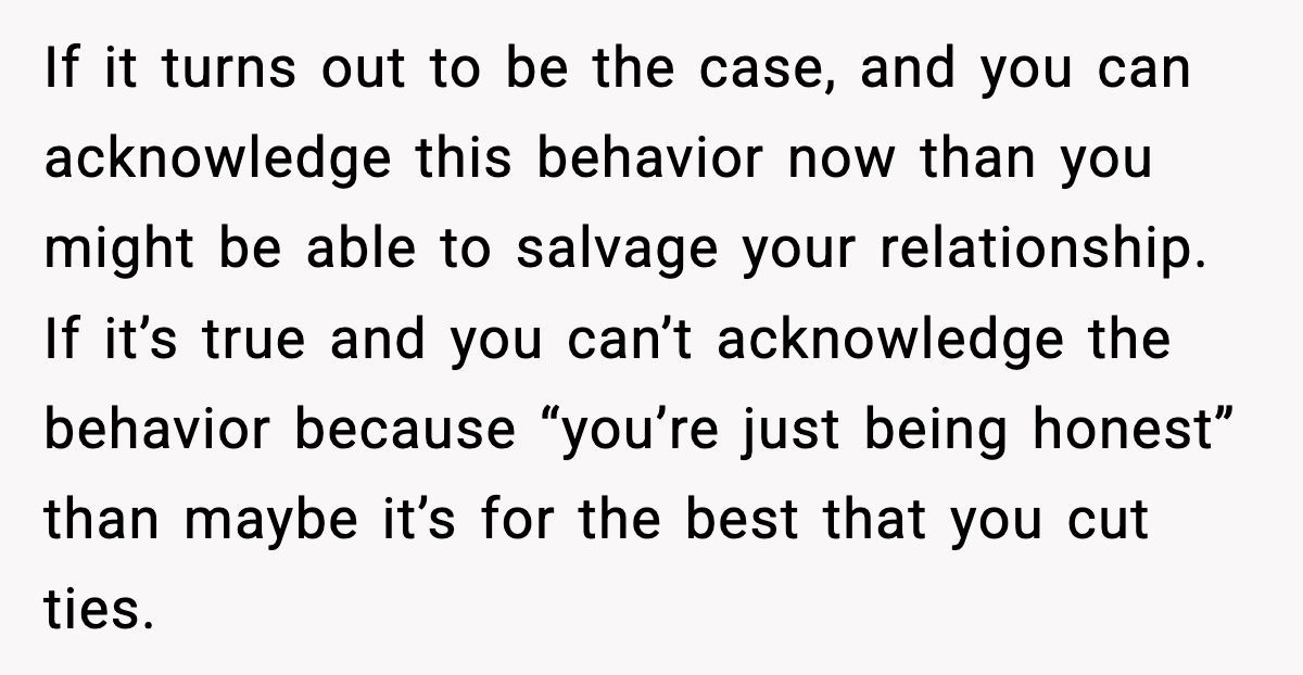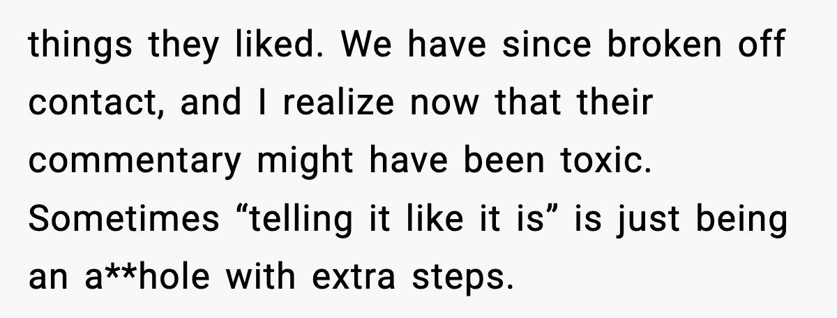 One commenter questioned if the Redditor’s “brutal honesty” might hide toxic tendencies.