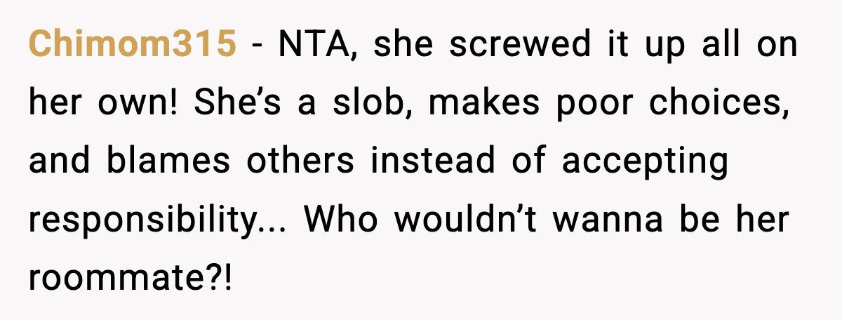 A Redditor mocked T’s slobby ways, wondering who’d want her as a roommate.
