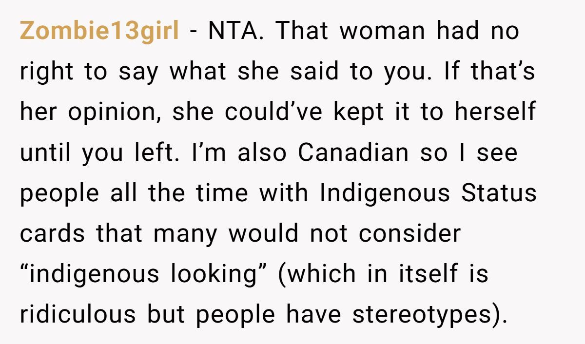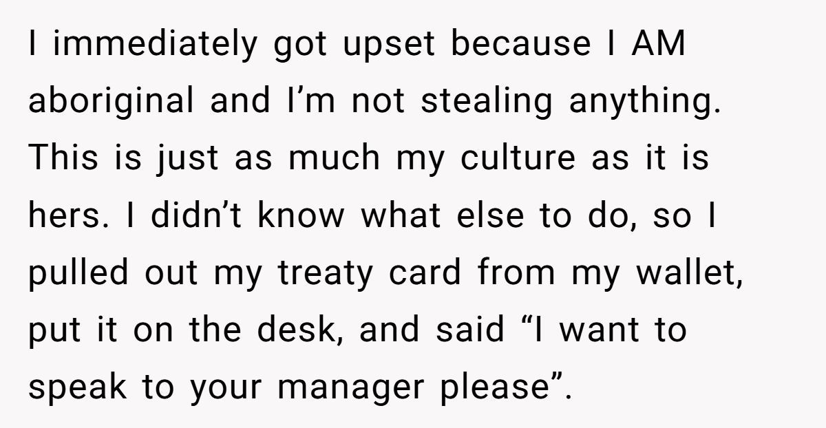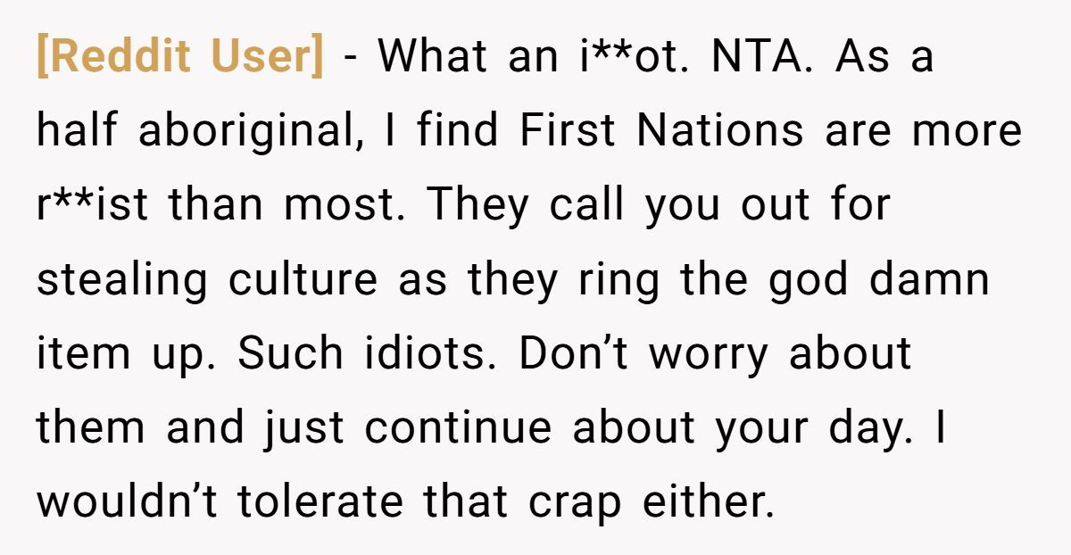What makes this story especially layered is the setting: a shop promoting Indigenous handmade goods, meant to uplift the culture. The irony? A gatekeeping cashier almost pushed away a woman eager to reconnect for the sake of her family. Her son is fully Indigenous, and this moment was meant to be bonding—not alienating. The problem wasn’t the product she bought, but the prejudice she endured.