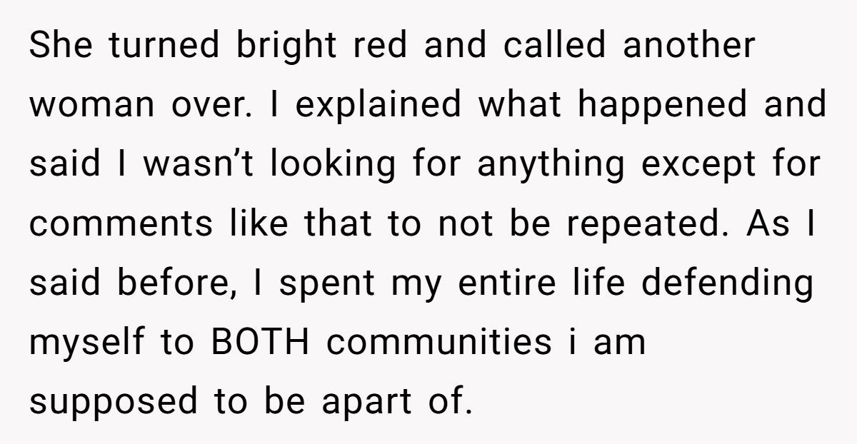 Cultural identity is never a straight road. For those with mixed heritage, it’s often a winding journey filled with side-eyes, assumptions, and exhausting justifications. This Redditor’s experience—being dismissed by someone from her own wider cultural community—is a sharp reminder of how narrow some perceptions can be.