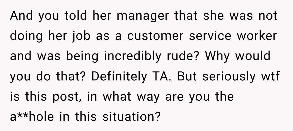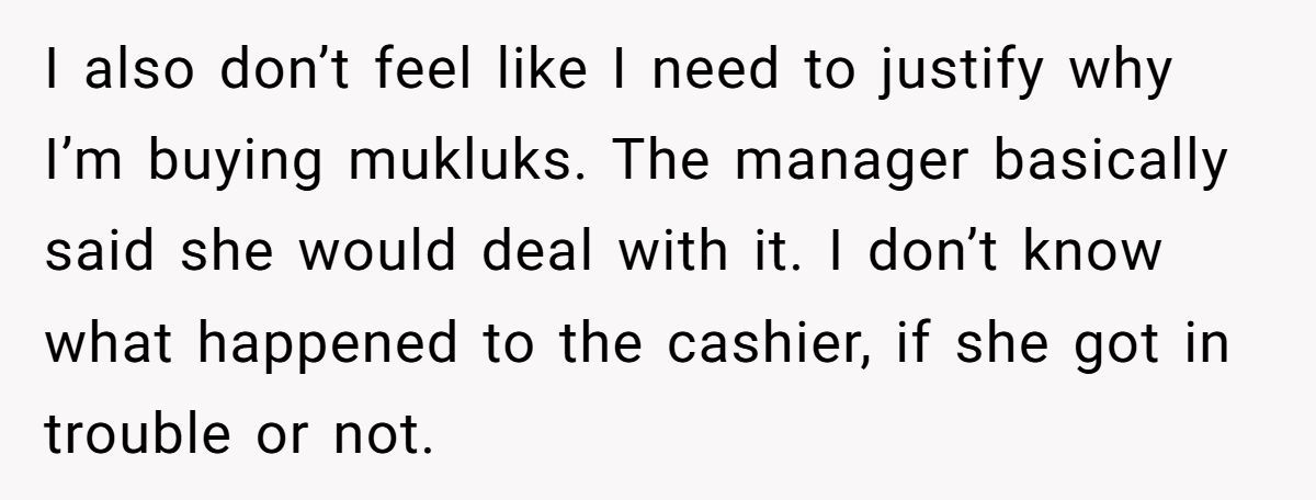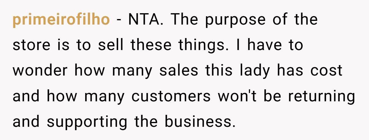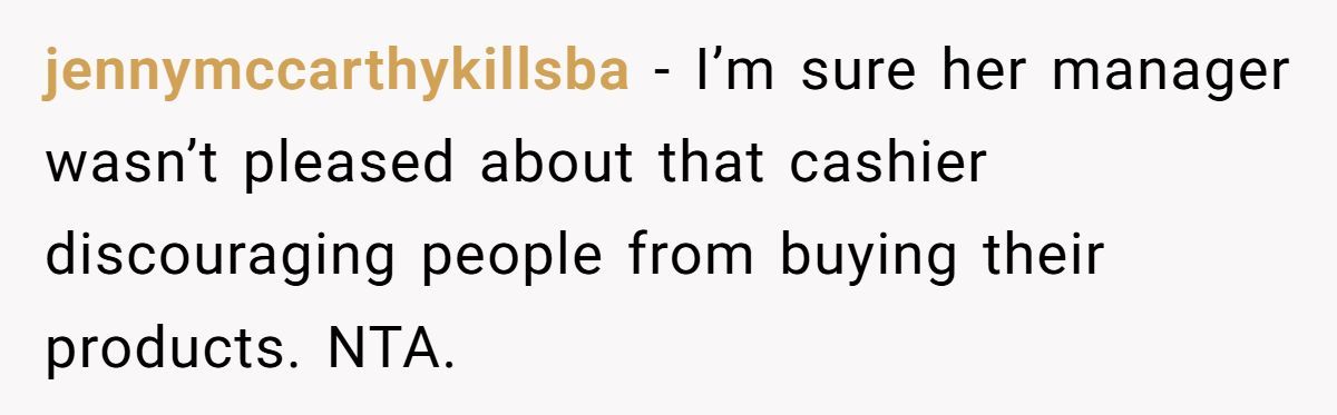 Commenters highlighted the cashier’s comments could deter customers, supporting the woman’s report to the manager
